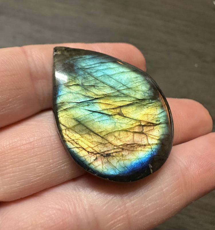 Experience the captivating beauty of our Freeform Labradorite #10. This one-of-a-kind piece showcases the unique and natural color variations of labradorite, making it a true statement accessory. Elevate any outfit with this stunning stone that is sure to catch everyone's eye.