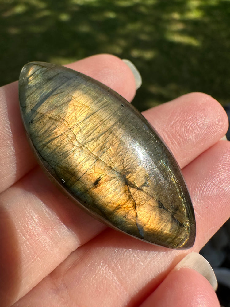 Enhance your jewelry collection with our stunning Marquise Labradorite Cabochon 72a. Each uniquely shaped cabochon showcases the mesmerizing beauty of labradorite, with its iridescent hues and unique marquise cut. The perfect addition to any piece, elevating your style to new levels.