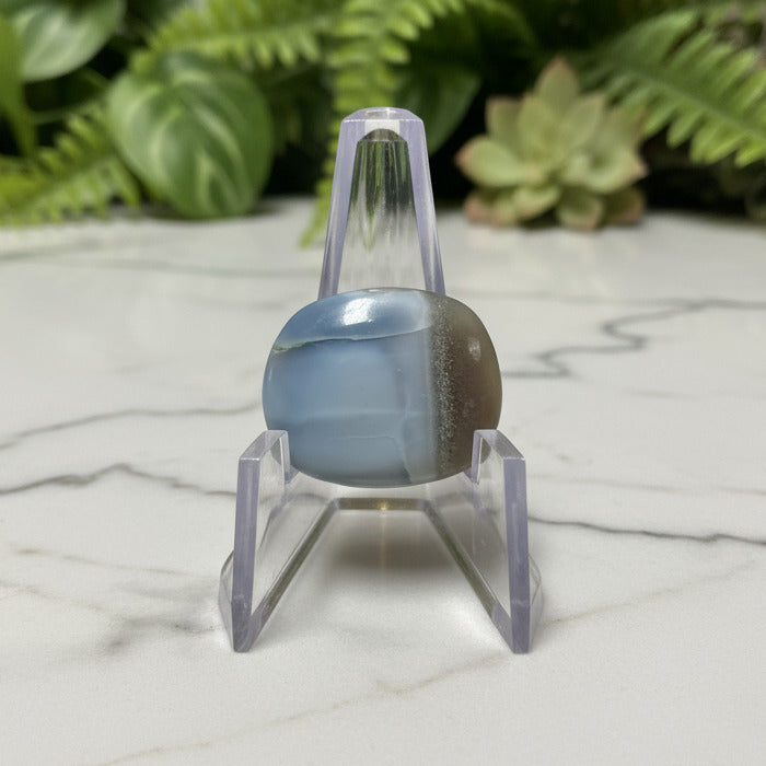 Discover the captivating beauty of the Owyhee Blue Opal Cabochon, showcasing a mesmerizing play of blues and subtle opalescence. Handcrafted for smooth elegance, this cabochon is perfect for creating striking, one-of-a-kind jewelry. Its unique color and polished finish bring a touch of natural wonder to any collection, making it an irresistible addition for enthusiasts and artisans alike. Elevate your designs with this exquisite stone and experience the timeless charm of Owyhee Blue Opal. Stand not included,