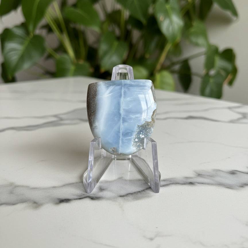 Discover the captivating beauty of the Owyhee Blue Opal Cabochon, showcasing a mesmerizing play of blues and subtle opalescence. Handcrafted for smooth elegance, this cabochon is perfect for creating striking, one-of-a-kind jewelry. Its unique color and polished finish bring a touch of natural wonder to any collection, making it an irresistible addition for enthusiasts and artisans alike. Elevate your designs with this exquisite stone and experience the timeless charm of Owyhee Blue Opal. Stand not included,