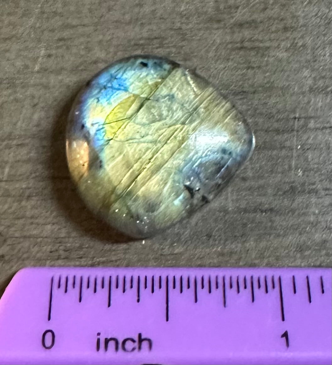 Elevate your style with our Pearshape Labradorite Cabochon 49a. This stunning stone displays a unique pearshape cut and features an iridescent glow that will catch anyone's eye. Perfect for jewelry making, this cabochon adds a touch of elegance to any piece. Shine bright with this one-of-a-kind gemstone.