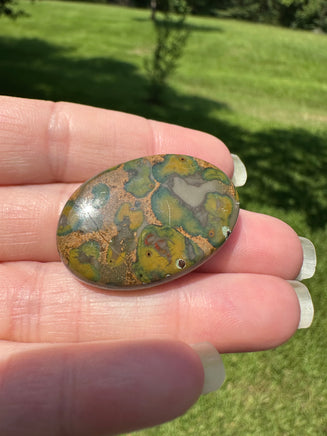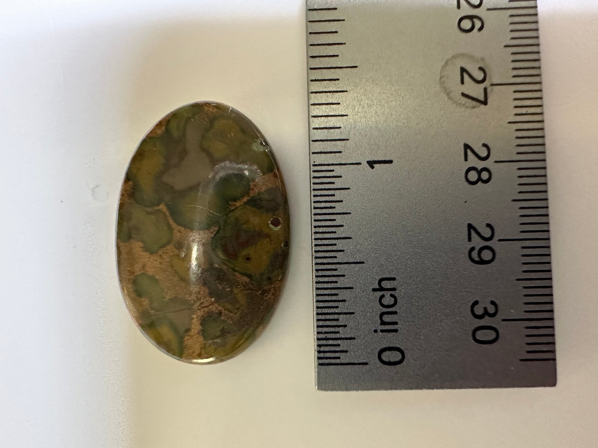 Discover the unique beauty of Rainforest Jasper (Rhyolite) Cabochon #9, a stunning stone that showcases intricate patterns inspired by nature. Perfect for jewelry making or collection, this cabochon offers both visual appeal and a connection to the earth’s vibrant energy. Elevate your creations with this captivating gem that brings a touch of the rainforest’s mystery and charm to your designs.