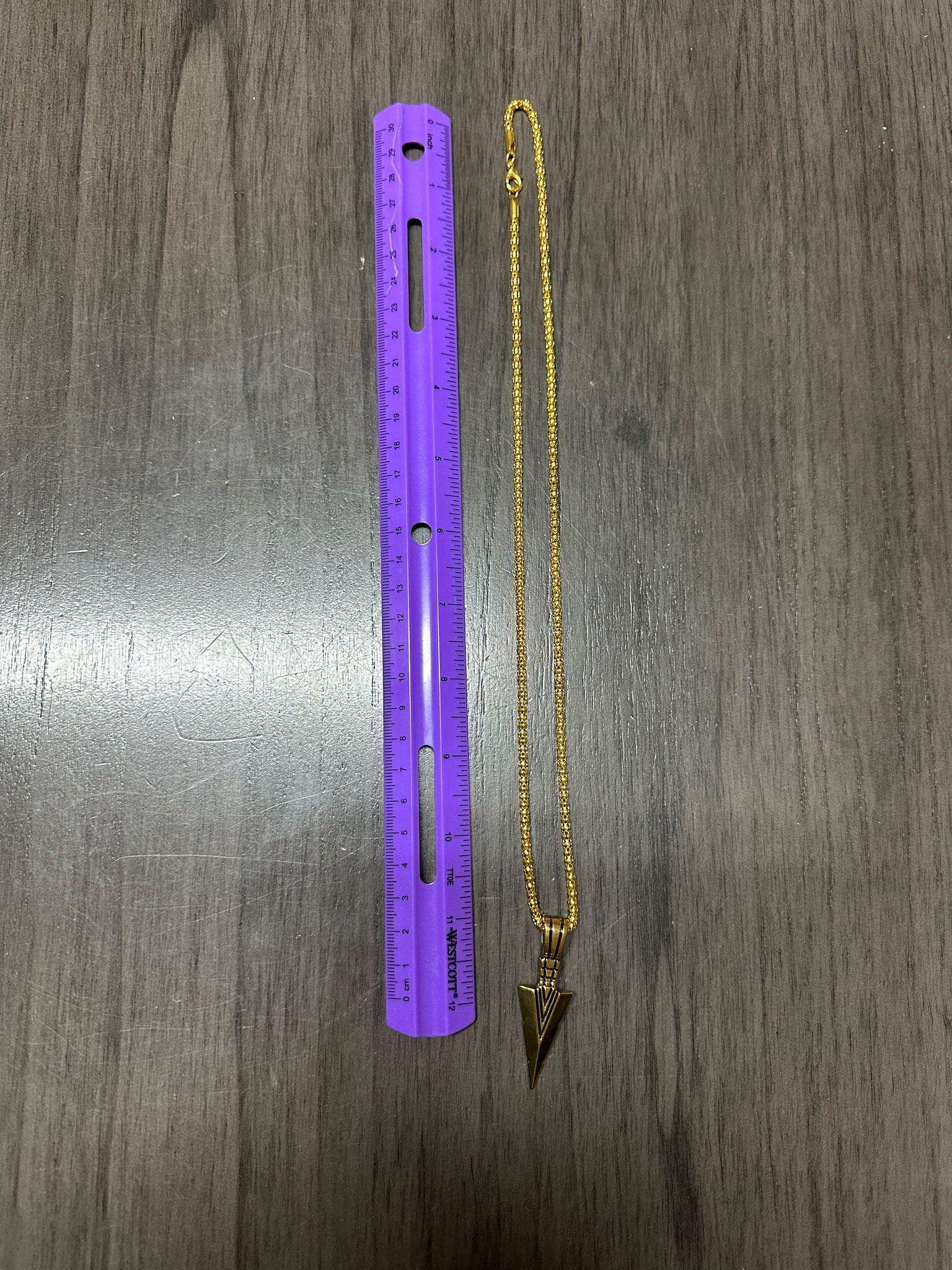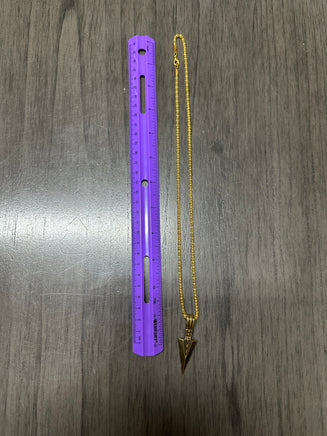This Goldtone Arrowhead Pendant and Chain is perfect for any fashionista. The pendant is made of goldtone metal and has a unique arrowhead design. The chain is also goldtone, Add a touch of stylish elegance to any outfit with this eye-catching pendant and chain.