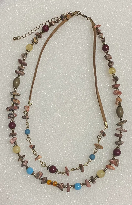 Elevate your style with our unique Leather, Beads and Chipped Stone Necklace. Made with high-quality materials, this necklace exudes a natural and elegant look. Perfect for adding a touch of bohemian flair to any outfit. Upgrade your accessory game and stand out from the crowd.