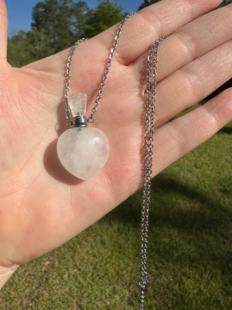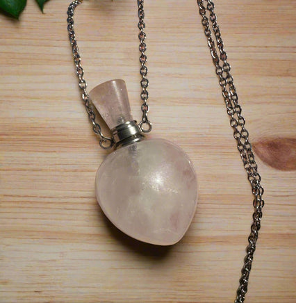 Elevate your style while incorporating your favorite scents with our Quartz Perfume/Essential Oil Bottle Necklace. Handcrafted with a stunning quartz pendant, this necklace allows you to carry your signature scent with you wherever you go. The perfect blend of fashion and function, it makes a thoughtful gift for yourself or a loved one.