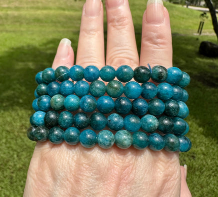 Enhance your bracelet designs with these stunning Blue Apatite 8mm beads. Known for their vibrant blue hue, these beads add a touch of elegance and energy to any accessory. Perfectly sized for comfortable wear, they bring both beauty and balance to your creations. Elevate your jewelry collection with the captivating charm of Blue Apatite. DIY Temporary strung to show potential.