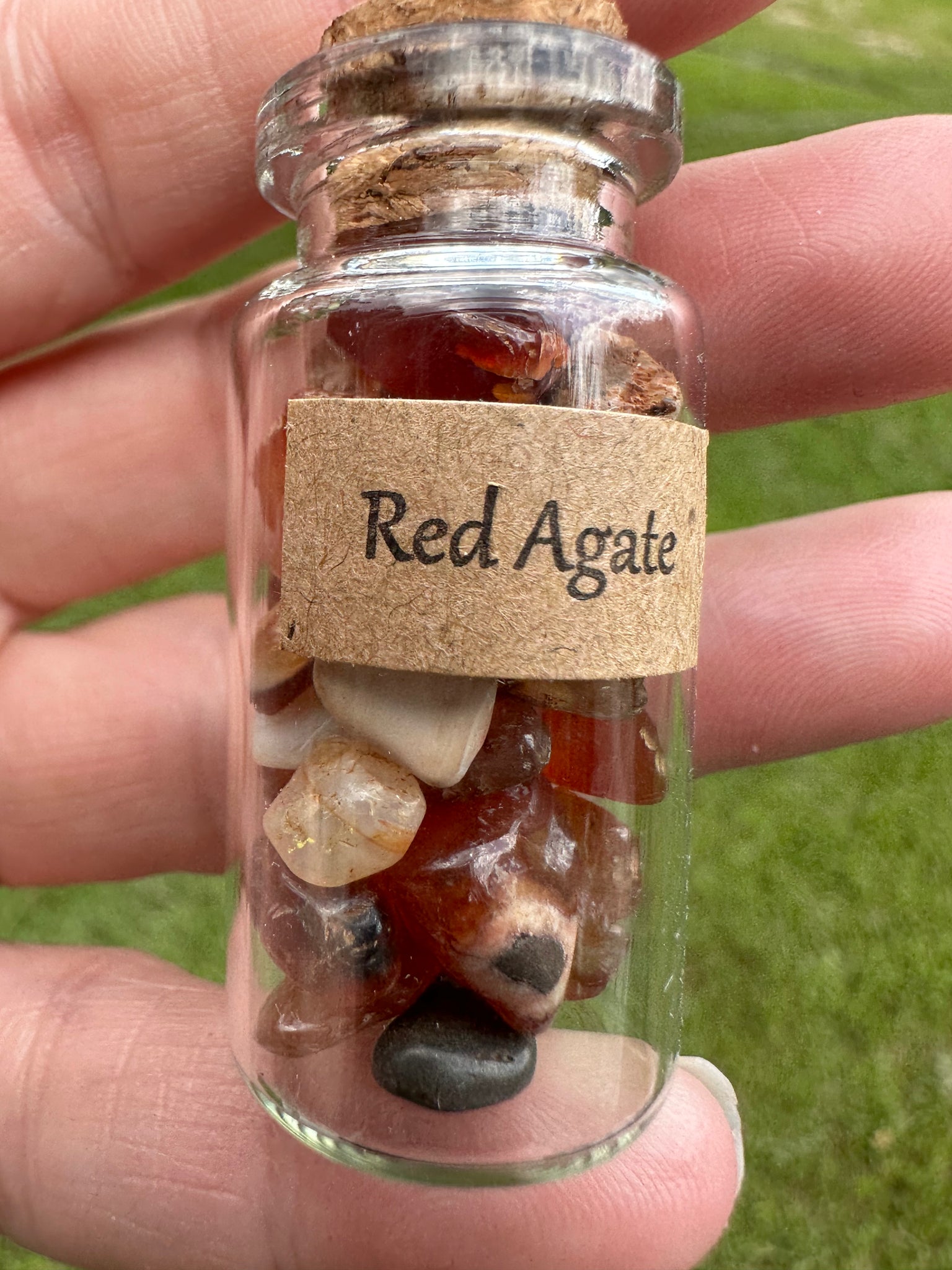 Add vibrant energy to your space with these Red Agate Chips in a charming bottle. Known for their grounding and protective qualities, these polished chips enhance focus and balance. Perfect for meditation, decoration, or gifting, they offer a touch of natural beauty and positivity wherever placed.