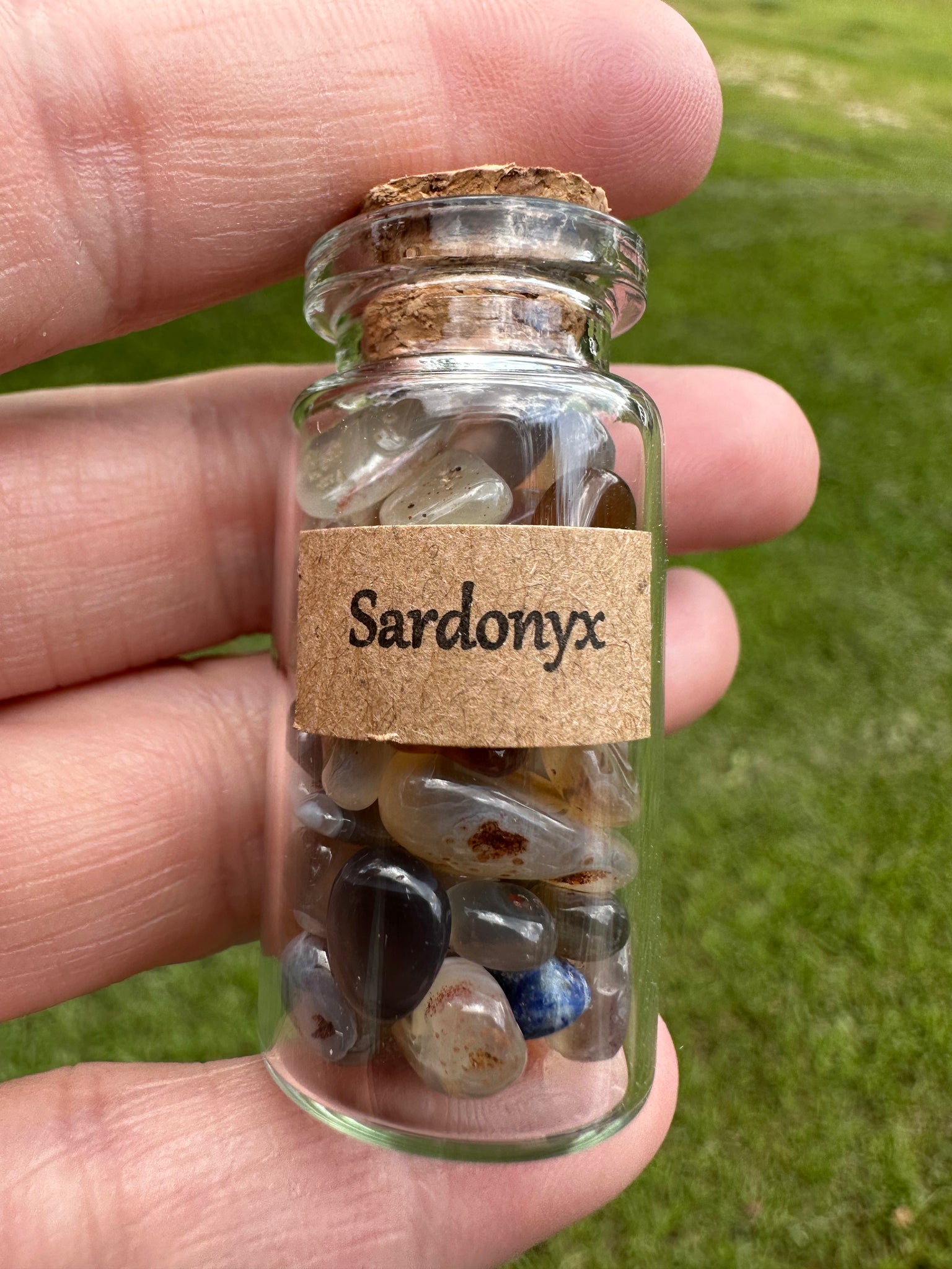 Discover the natural beauty and grounding energy of Sardonyx Chips, conveniently stored in a clear bottle for easy display or use. Perfect for adding a unique touch to your collection or enhancing your space with their warm, layered hues, these chips offer both aesthetic charm and potential vibrational benefits. Ideal for crystal enthusiasts seeking an attractive and versatile way to enjoy Sardonyx’s qualities every day.