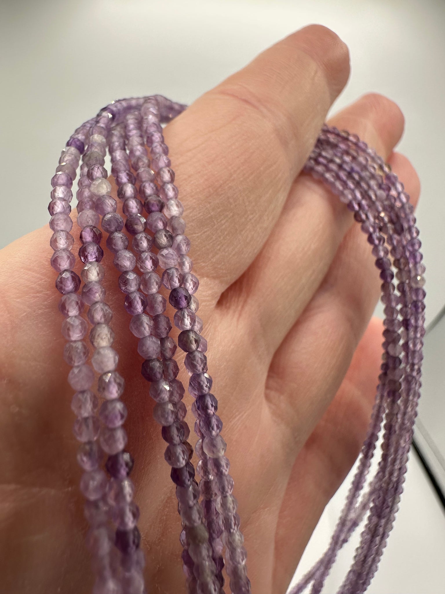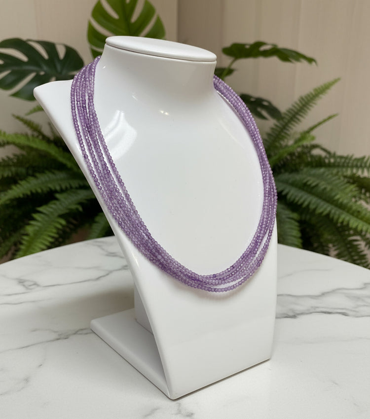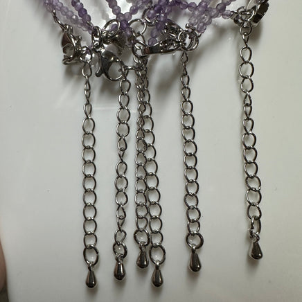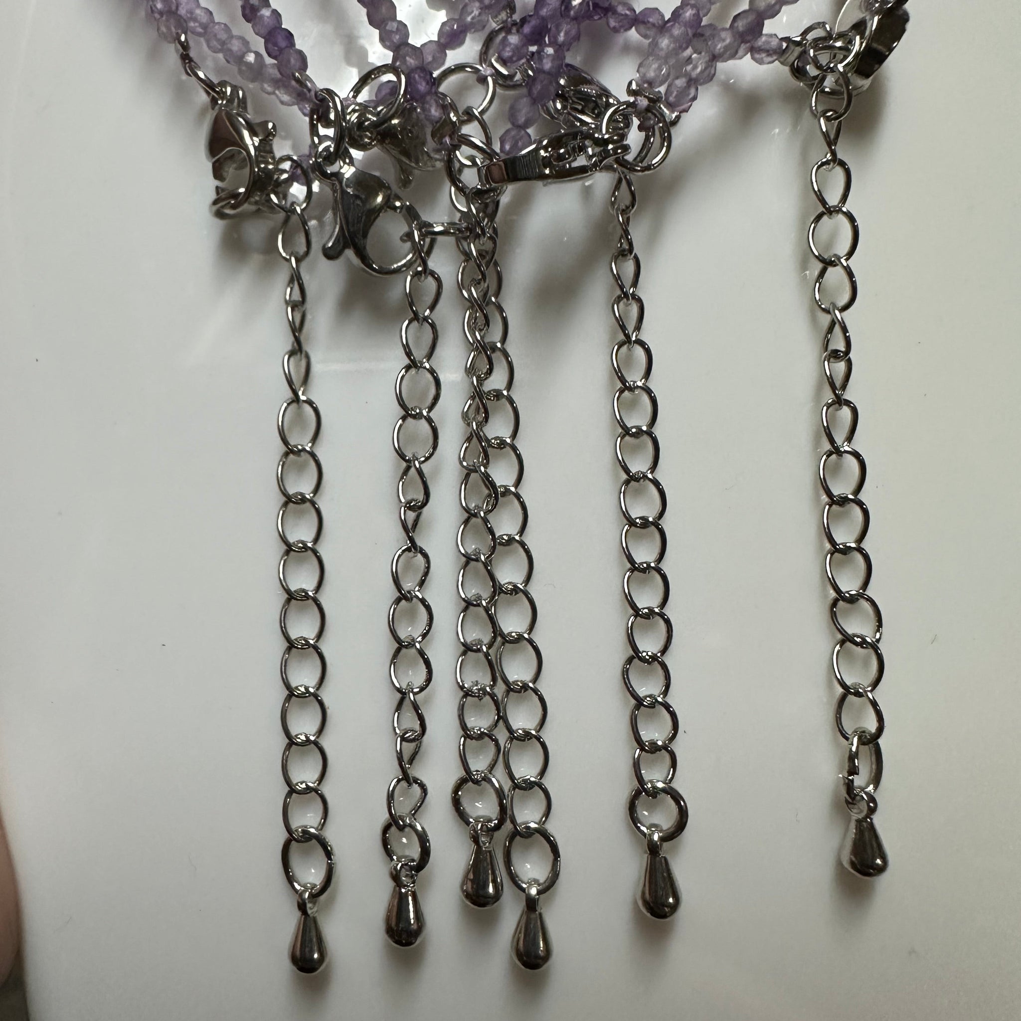 Upgrade your jewelry collection with our Natural 2mm Natural Amethyst Necklaces. Handcrafted from premium materials, these necklaces exude elegance and luxury. The natural amethyst stones add a touch of sophistication, making them the perfect accessory for any outfit. Experience the beauty and benefits of natural gemstones with our stunning necklaces. Necklace length is 16” Plus 2” extension. Claps and extensions are made with Stainless Steel.