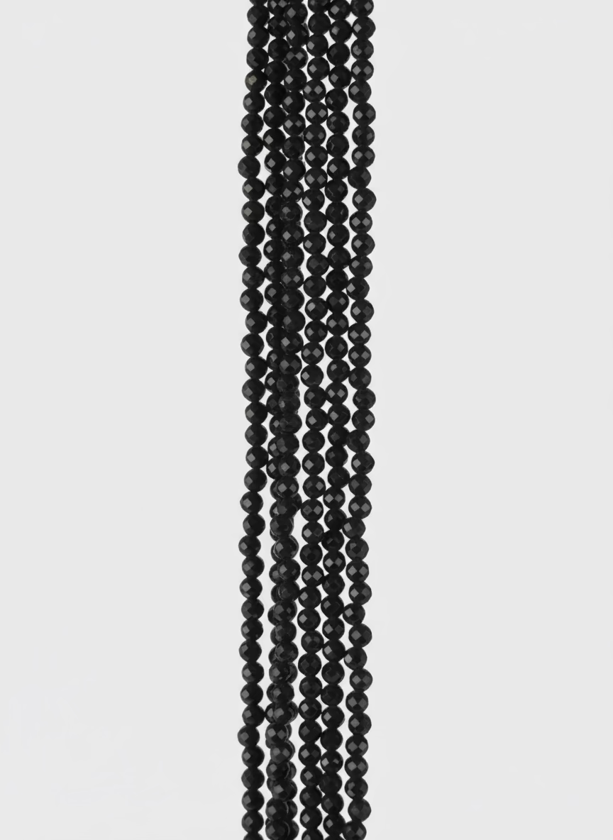 Indulge in the luxurious world of fine jewelry with our exquisite Natural 3mm Faceted Black Spinel Necklace. Featuring stunningly faceted genuine black spinel beads measuring 3mm in diameter, this necklace exudes elegance and sophistication. Perfect for any occasion, it adds a touch of timeless beauty to any outfit. Necklace length 16ā plus 2ā extension. Clasp and extensions are made with Stainless Steel.