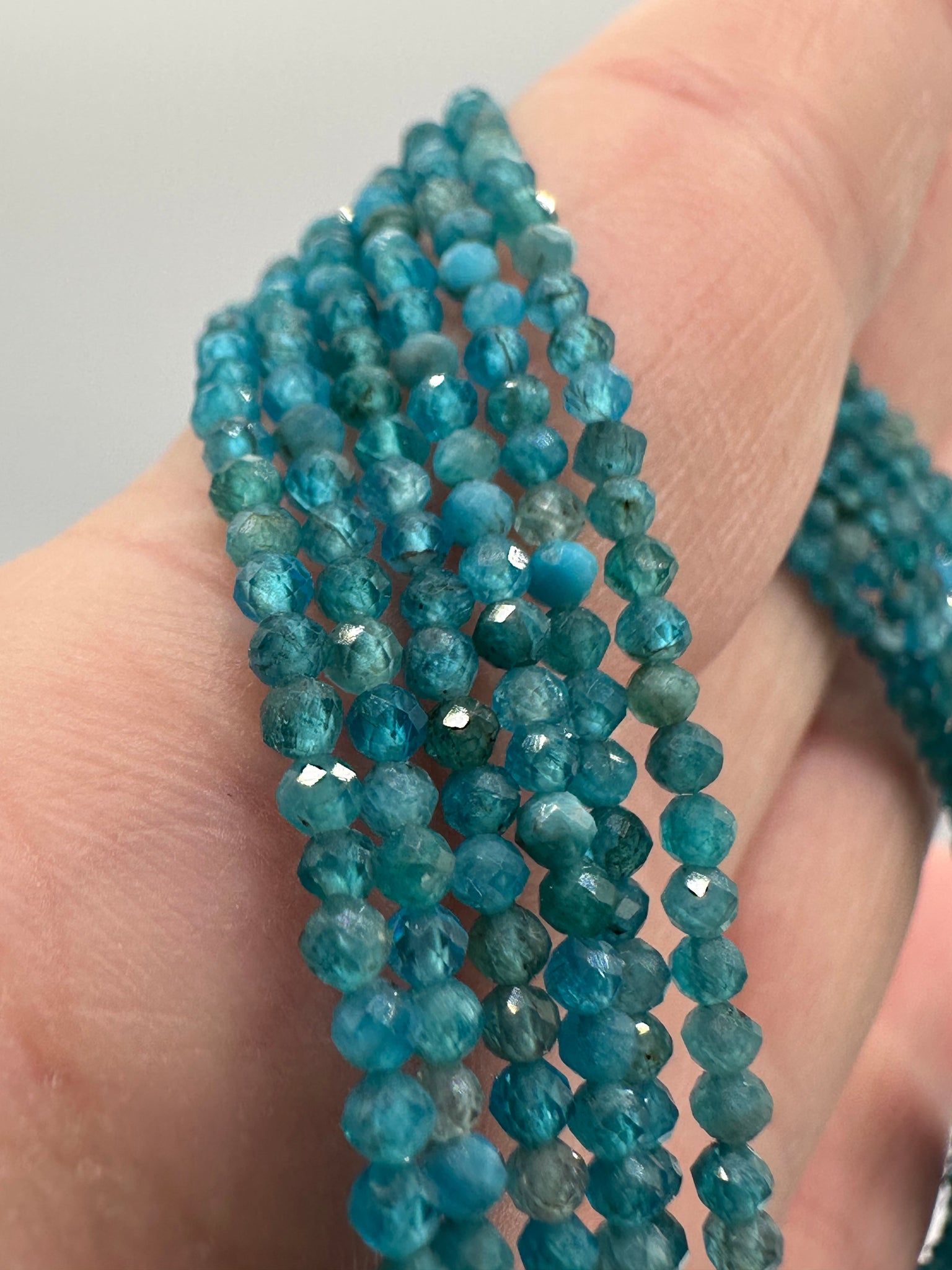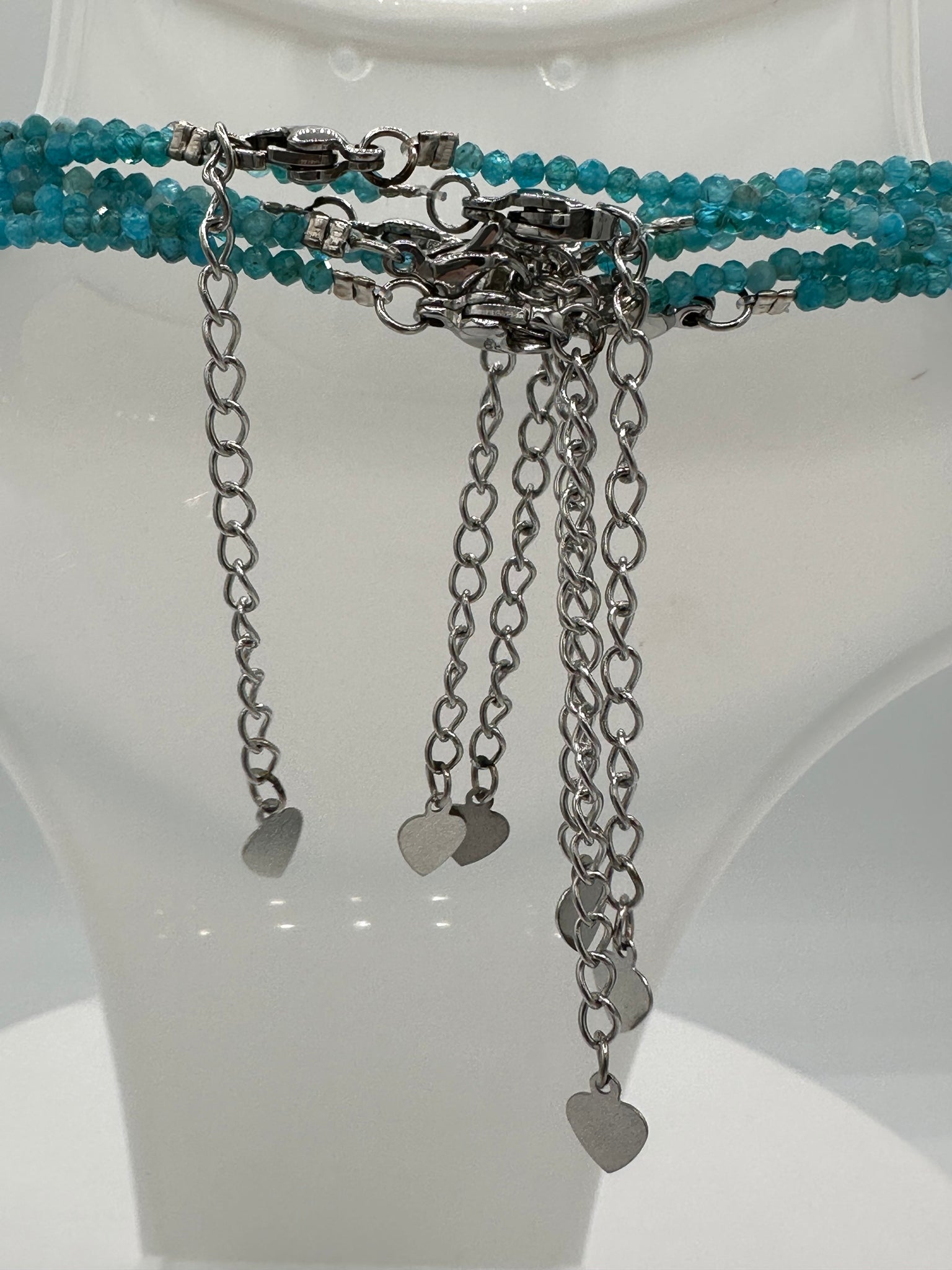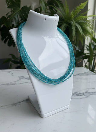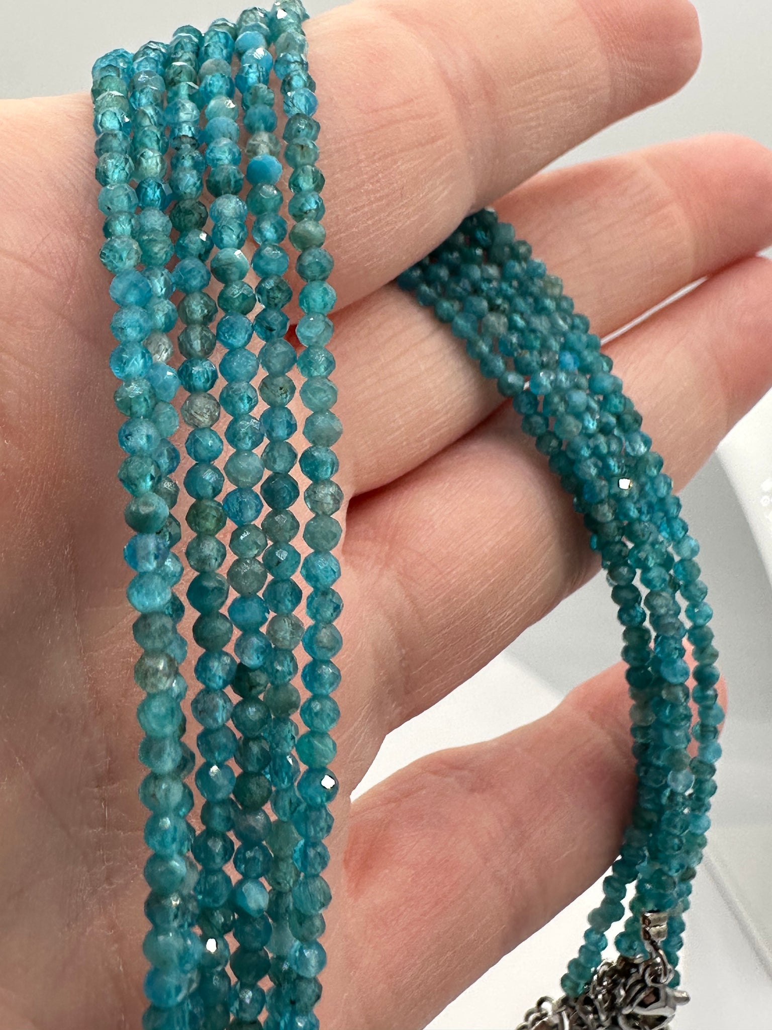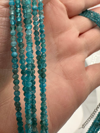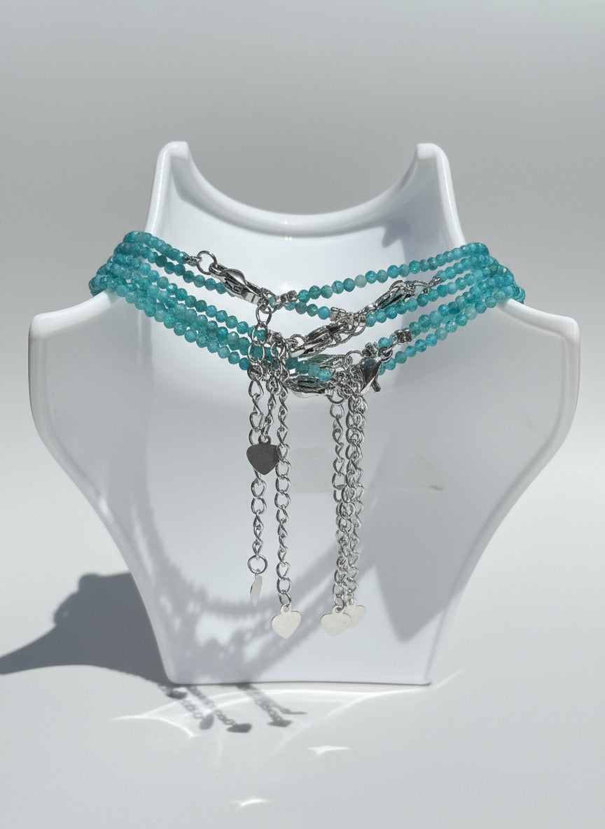 Upgrade your accessory game with our Natural 2mm Blue Apatite Necklaces. Made with stunning blue apatite stones, these necklaces add a touch of natural elegance to any outfit. Embrace the potential benefits of increased confidence and style with this versatile and unique piece. Necklace length is 16” Plus 2” extension. Clasp and extensions are made with Stainless Steel.