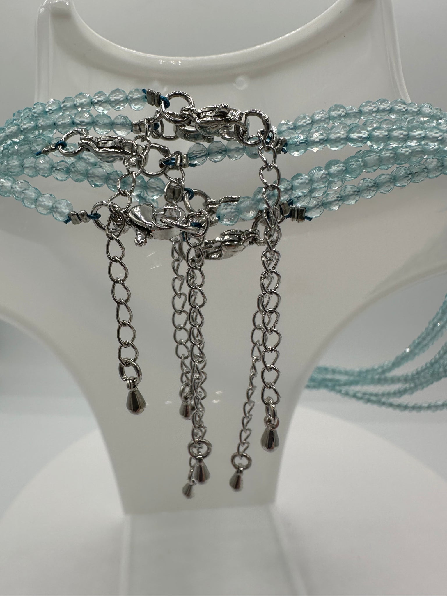 Elevate your jewelry collection with our Natural 2mm Blue Topaz Necklaces. These stunning necklaces feature authentic 2mm Blue Topaz stones, providing a touch of elegance and sophistication to any outfit. Add a pop of color to your look and enjoy the natural beauty and benefits of this gemstone. Necklace length is 16” Plus 2” extension. Clasp and extensions are made with Stainless Steel.
