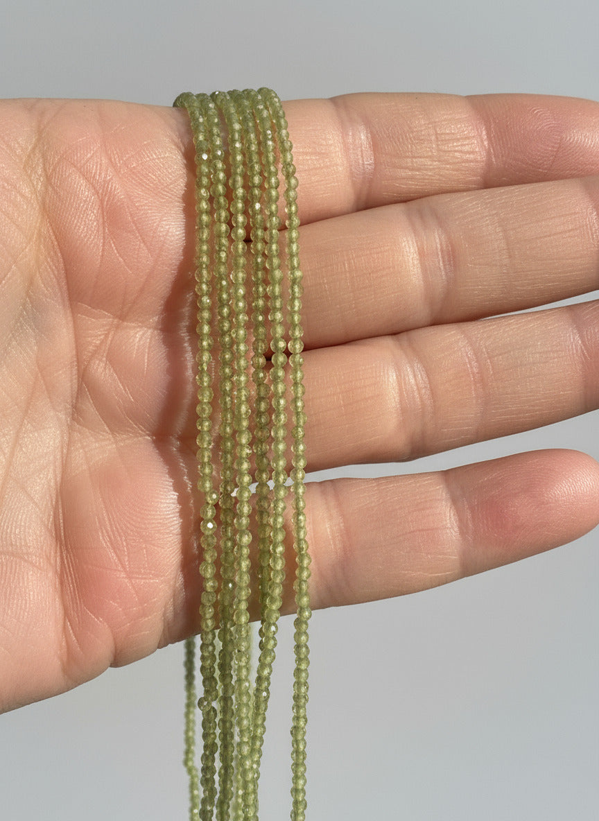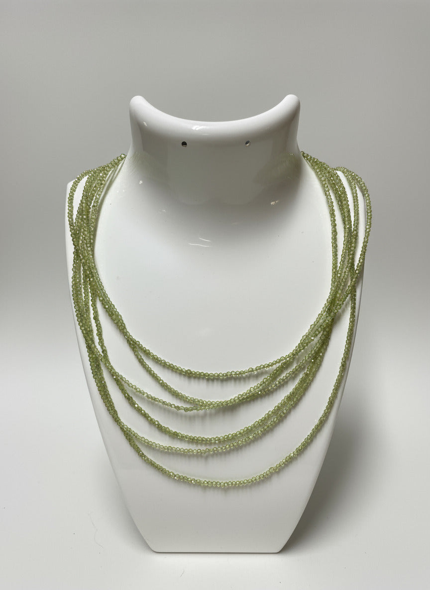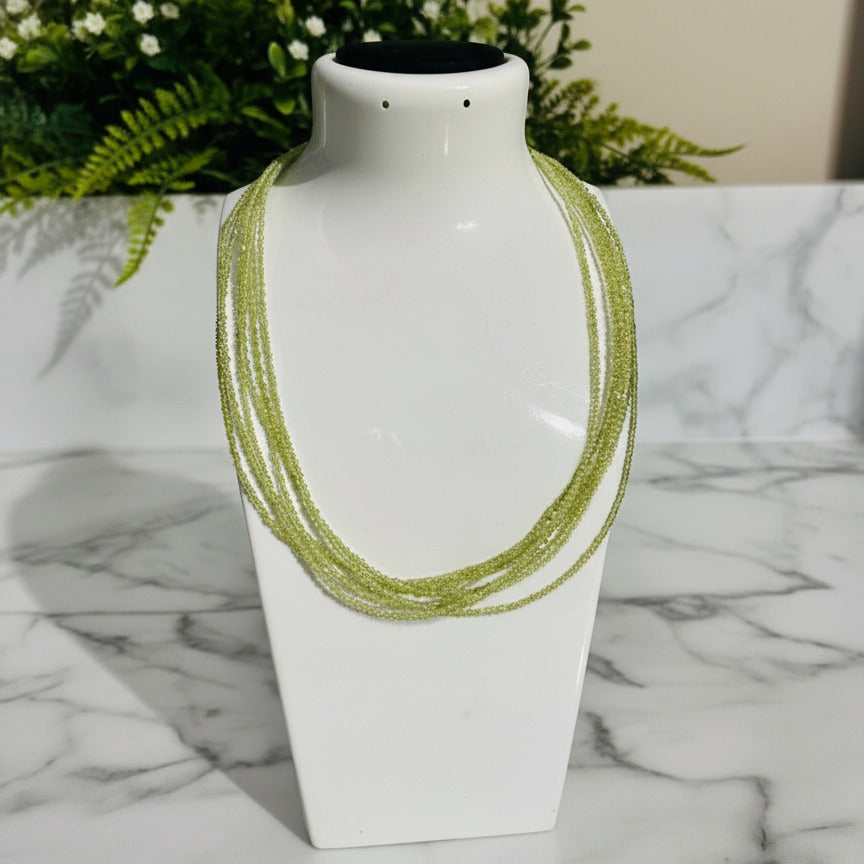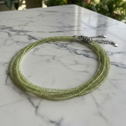 Discover the beauty of our Natural 2mm Peridot Necklaces. Made of high-quality materials, these necklaces exude a natural and delicate charm that will elevate any outfit. Add a pop of color to your ensemble and enjoy the benefits of wearing this stunning piece of jewelry. Necklace length is 16” Plus 2” extension. Clasp and extensions are made with Stainless Steel.