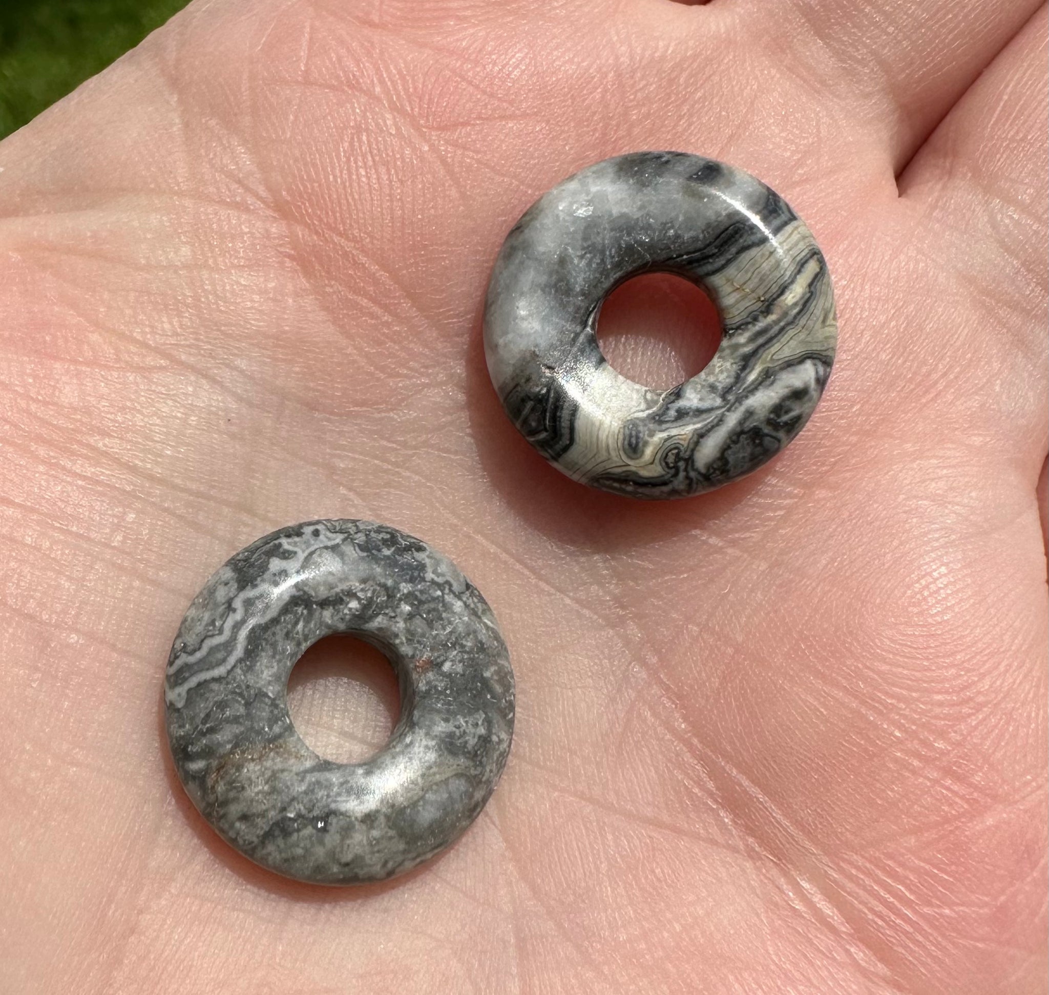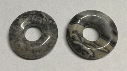 Enhance your style with our unique Picasso Jasper Donut. Measuring at 18mm, this beautiful piece will add a touch of sophistication to any outfit. Its intricate design and natural coloring make it a versatile accessory that can be dressed up or down. Elevate your look with this statement piece.