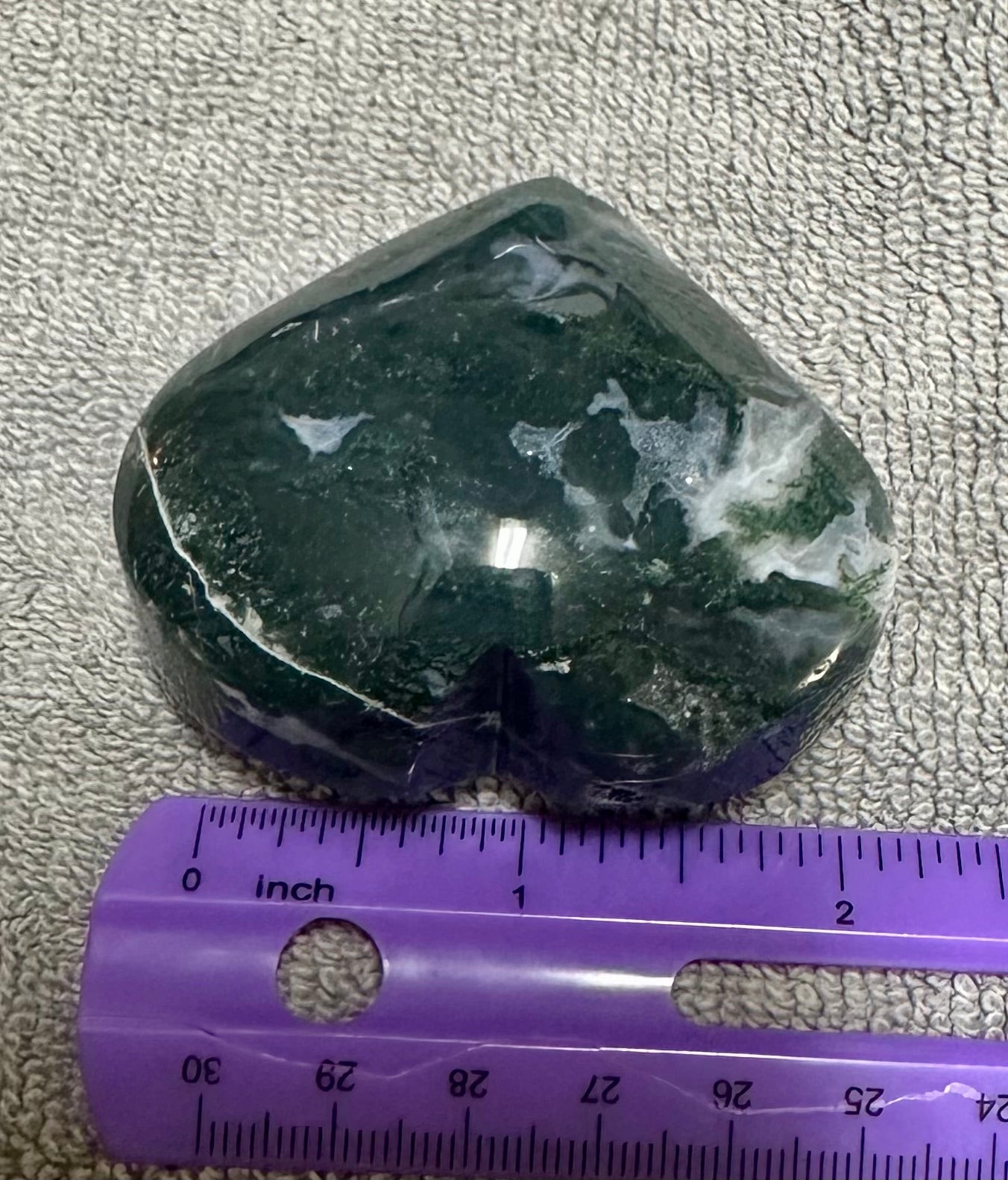 Add an earthy touch to your collection with Moss Agate Heart #5. This unique moss agate features stunning green and white patterns, perfect for promoting balance and stability. Elevate your energy and enjoy its natural beauty. Stand not included.