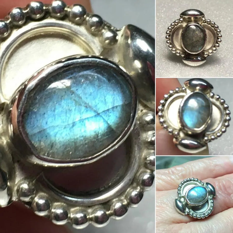Sterling Silver Handcrafted 9x7mm Labradorite Ring Sz 7 #28