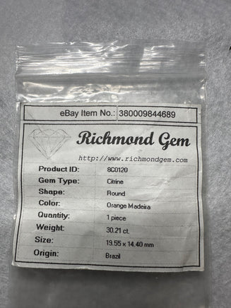 Discover the captivating beauty of this Madeira Citrine, measuring 19x14mm and weighing an impressive 30.21 carats. Its rich, warm hues evoke the golden glow of a sunset, making it a stunning centerpiece for any jewelry collection. Perfect for those seeking a bold and elegant gemstone, this citrine offers both remarkable size and vibrant color to elevate your style with timeless sophistication.