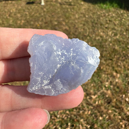 Blue Lace Agate Raw Specimen showcases the serene beauty of nature's artistry. This unpolished stone features delicate bands of soft blue and white, creating a calming visual that draws the eye. Perfect for collectors seeking authentic mineral specimens, this raw piece retains its natural character and geological integrity. Whether displayed on a shelf, used in crystal collections, or appreciated for its aesthetic appeal, Blue Lace Agate is treasured for its gentle energy and striking appearance. A genuine addition to any mineral enthusiast's collection.