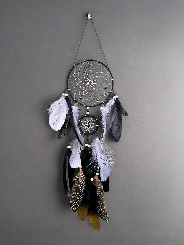Catch your dreams and keep the bad ones away with this beautiful Black Dream Catcher. Featuring a classic design with black feathers, it adds a touch of elegance to any space. Hang it in your bedroom, living room, or office and let it bring positive dreams and vibes into your life.