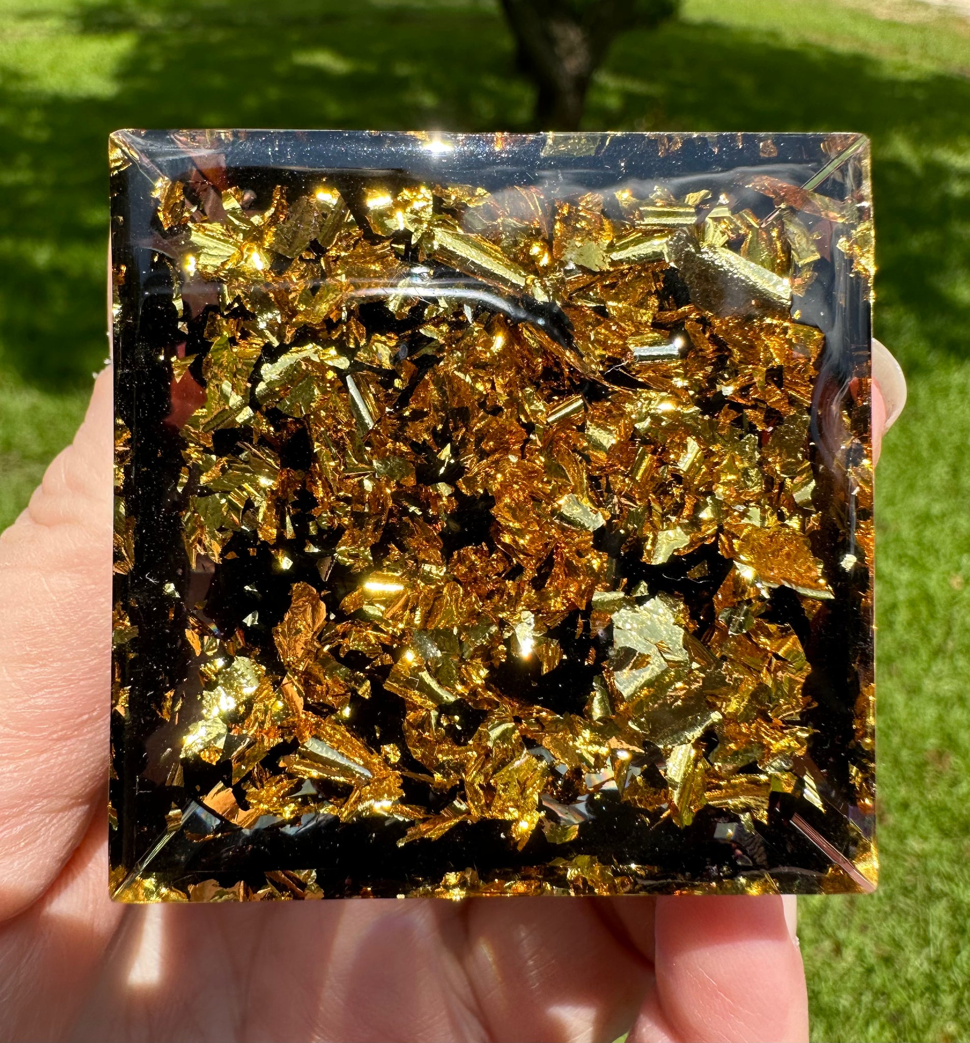 Introducing the Amethyst Tree of Life Orgonite Pyramid #17 - a powerful combination of amethyst crystal, tree of life design, and orgonite material. Experience the healing properties of amethyst while promoting balance and harmony in your surroundings. This expertly crafted pyramid is a must-have for crystal enthusiasts and energy workers. Measures Approximately 2" x 2."