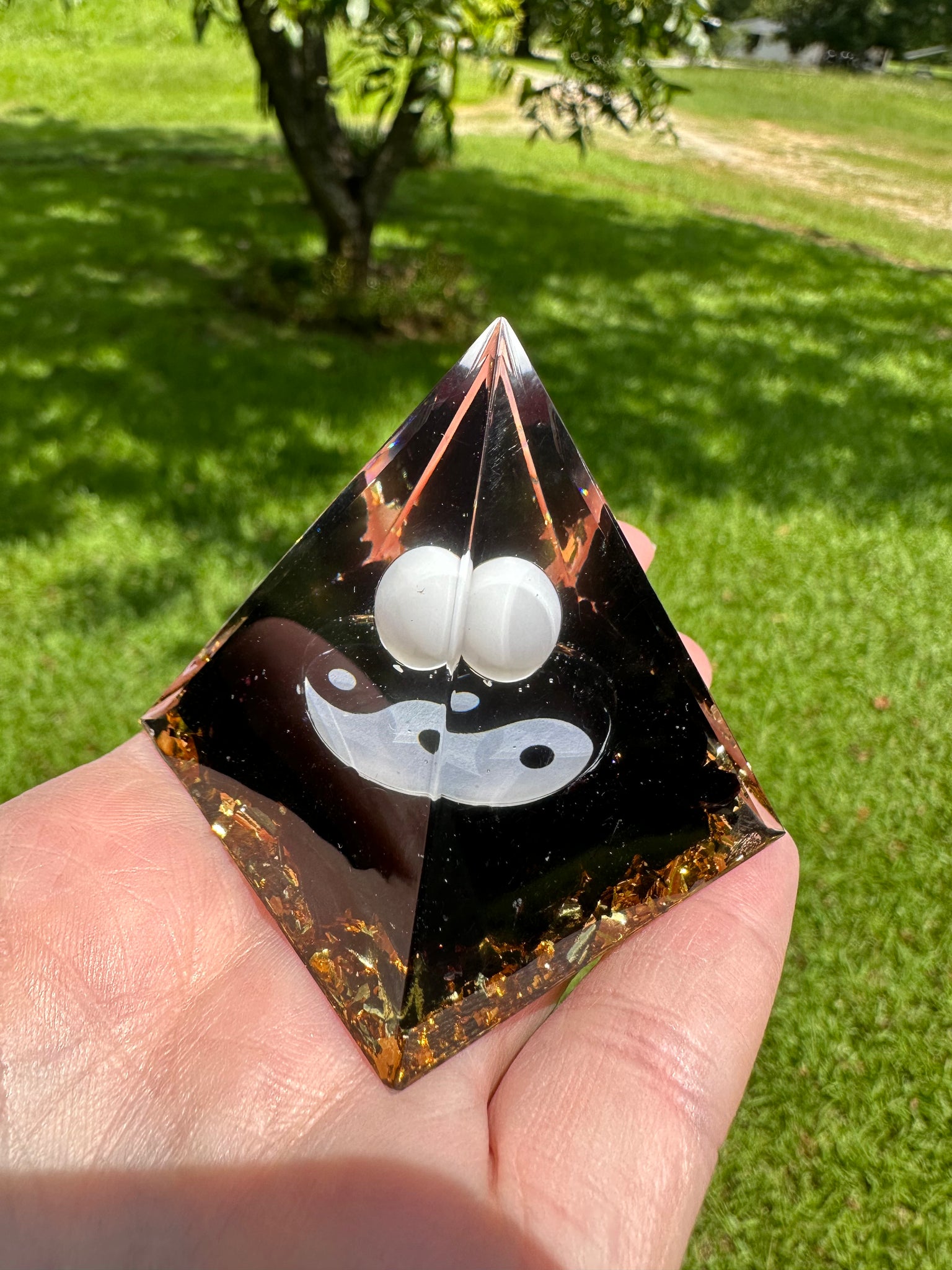Transform your space with this powerful Yin Yang Orgonite Pyramid #10. Designed to balance energies and promote harmony, this pyramid utilizes orgonite technology to provide a supportive and calming environment. Find balance and peace with this unique pyramid. Measures Approximately 2" x 2."