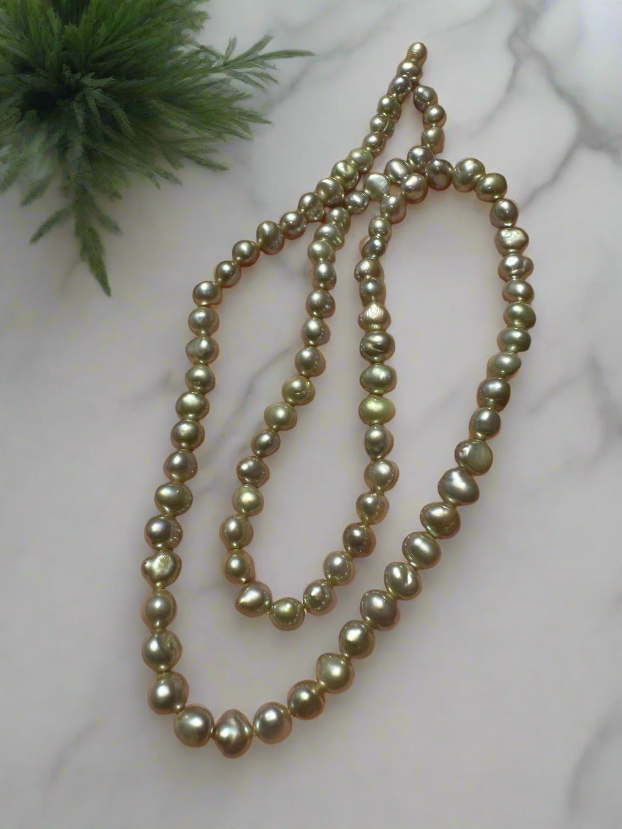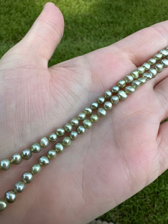 Elevate your jewelry collection with our Lime Freshwater Pearl Strand #10. Each pearl has a unique natural color, adding a touch of elegance to any outfit. Handpicked for their beauty and quality, these pearls are strung together to create a stunning and versatile accessory. These are for making jewelry and are dyed.