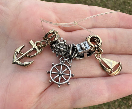 Achieve a classic nautical look with this charm set featuring an anchor, sailboat, and more. Constructed with precise accuracy and attention to detail, these charms are perfect for adding a touch of beach vibes to any ensemble.