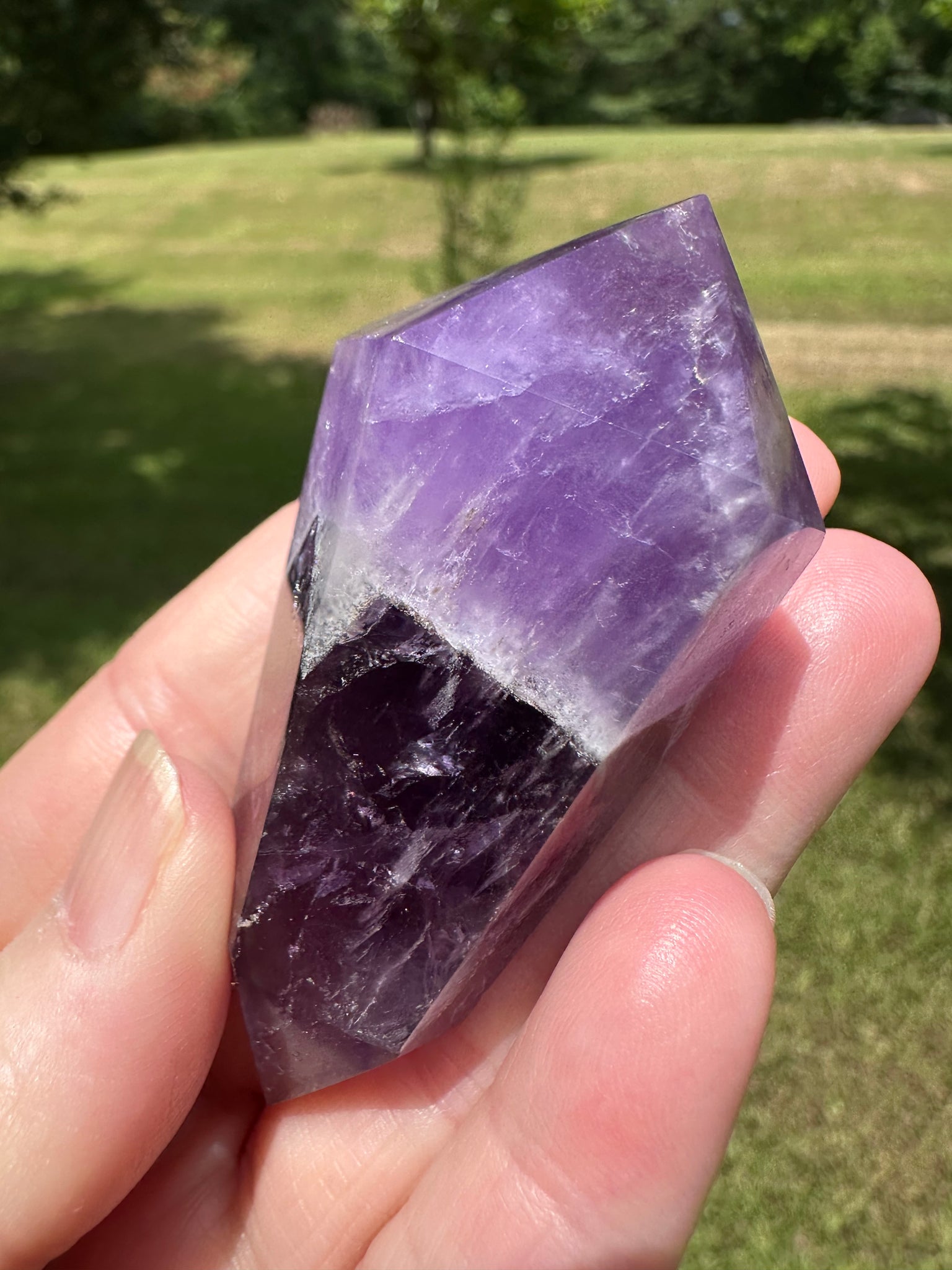 Discover the powerful energy of the Double Terminated Phantom Amethyst Scepter Wand #4. This unique crystal wand features double termination for balanced energy flow and phantom formations that enhance spiritual growth and clarity. Perfect for meditation, healing, or energy work, it helps clear negative energy and promotes calmness and insight. Elevate your crystal collection with this exceptional amethyst scepter wand designed to support your journey toward inner peace and transformation.