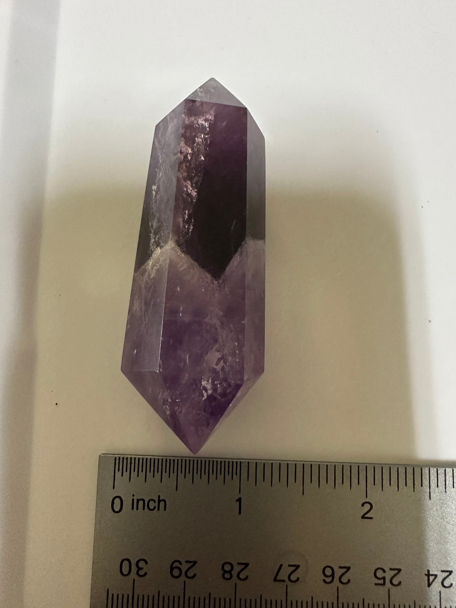 Discover the Double Terminated Phantom Amethyst Scepter Wand #13, a unique crystal that combines the calming energy of amethyst with the powerful structure of a scepter wand. Its double-terminated points allow energy to flow freely in both directions, enhancing meditation and spiritual growth. The phantom inclusions add depth and history, making this wand a supportive tool for healing, clarity, and balance in your daily practice. Perfect for those seeking gentle guidance and energetic alignment.