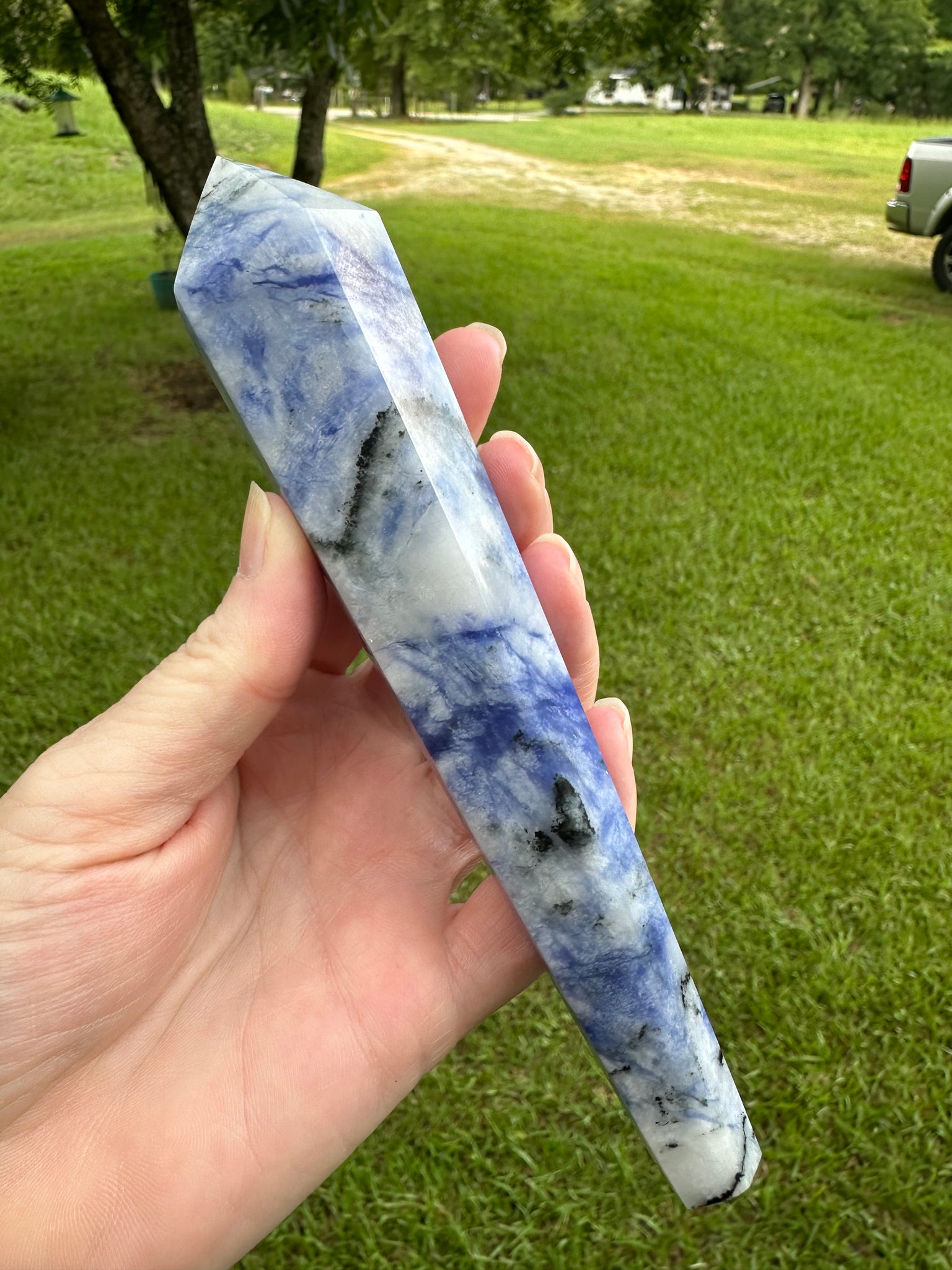 Introducing our majestic and powerful Large Sodalite Scepter #8. Crafted from high-quality sodalite stone, this scepter will enhance your meditation practice and bring inner peace and clarity. Its large size makes it perfect for both display and energy work. Add it to your collection today!
