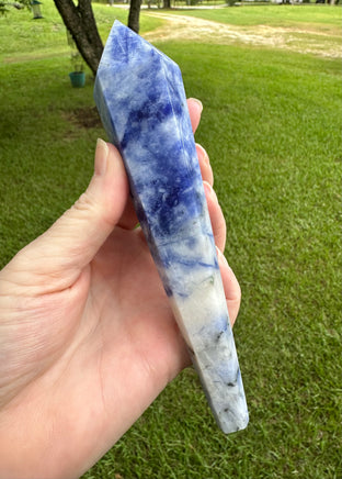 Introducing the Large Sodalite Scepter #9 - a stunning crystal for your collection. With its large size, this scepter boasts powerful energy and promotes inner peace and harmony. Perfect for meditation and healing practices, it's a must-have for crystal enthusiasts. Add it to your collection today and experience its benefits!