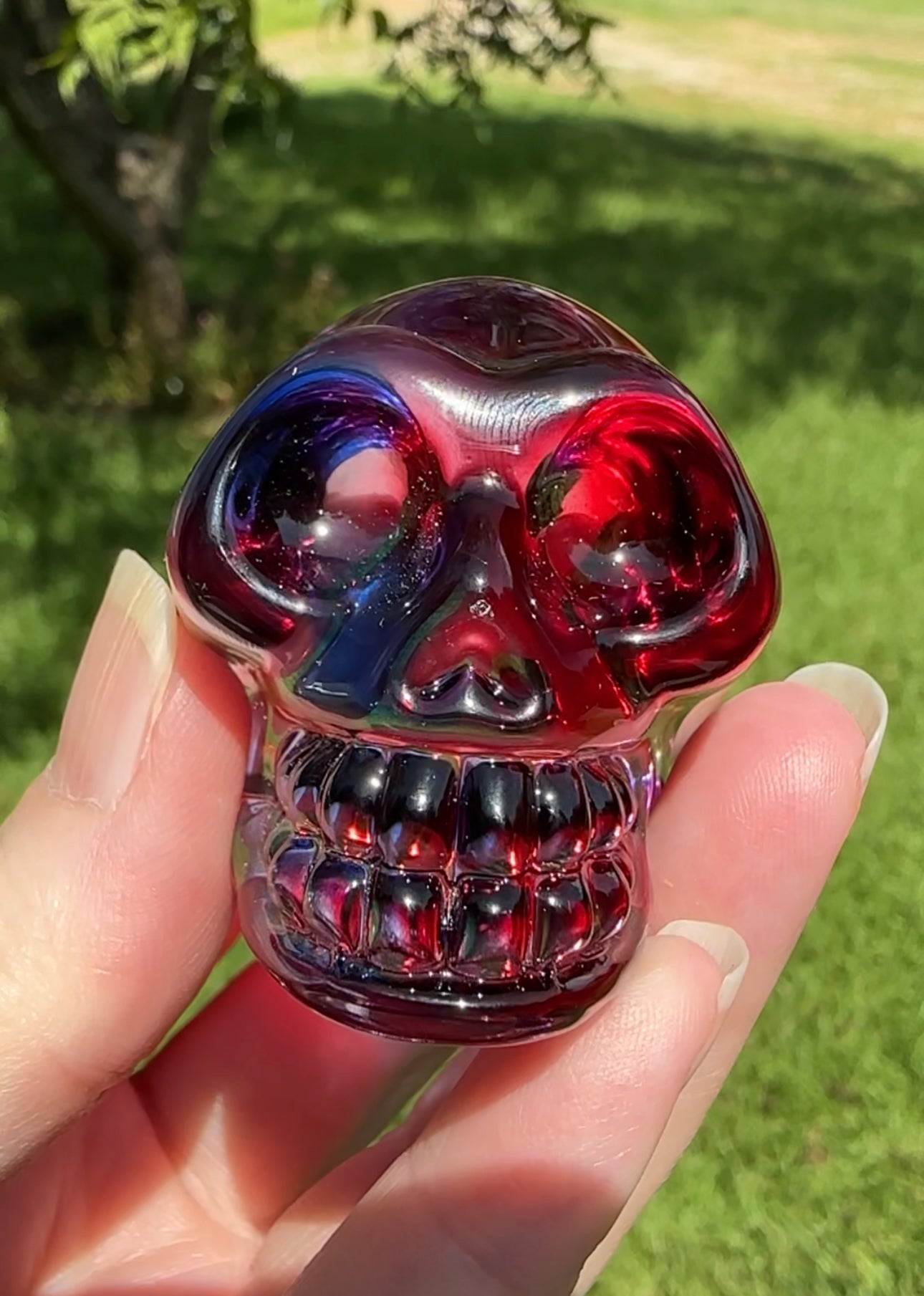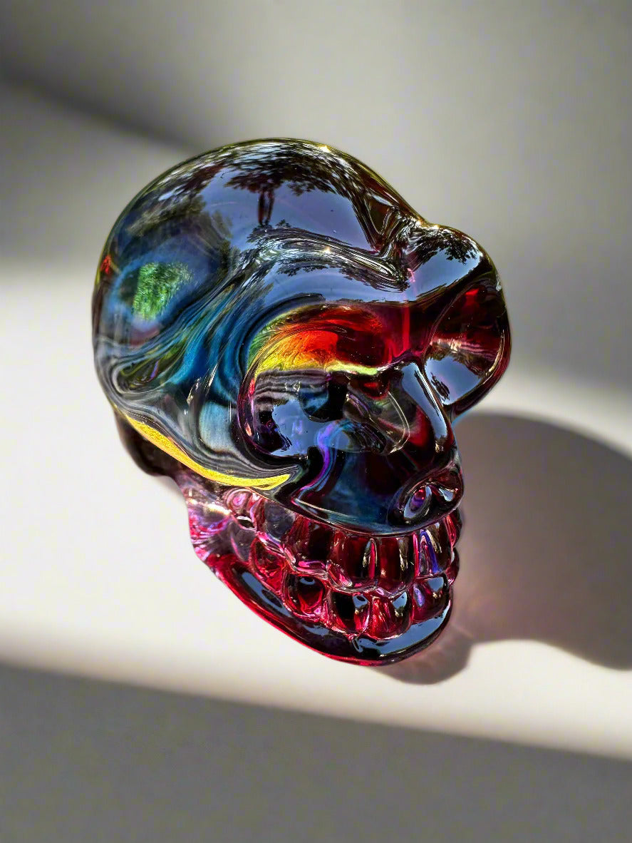 The Red & Blue Glass Skull is a captivating decorative piece that brings vibrant color and artistic flair to your space. Its bold red and blue hues catch the light, making it a standout addition to any room. Ideal for collectors or those looking to add a unique touch, this glass skull combines craftsmanship with striking design to enhance your décor.
