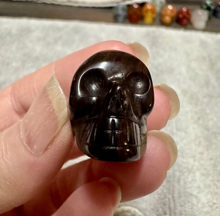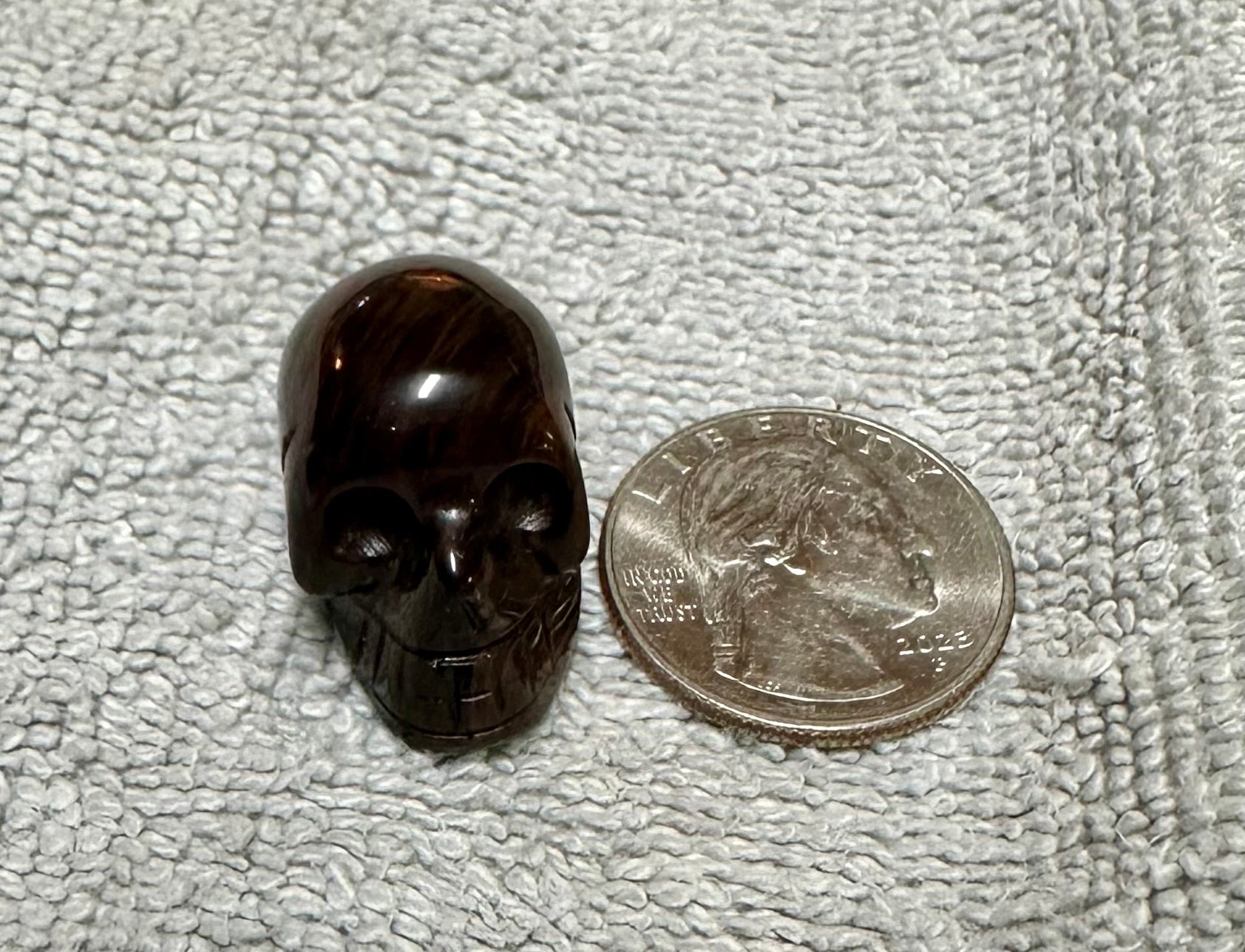 This Tiger's Eye Skull, crafted from the unique semi-precious gemstone, features a distinctive golden brown color with shimmering bands of light. It's not only a stunning decorative piece, but also believed to bring protection, focus, and confidence. Perfect for any collector or spiritual enthusiast.