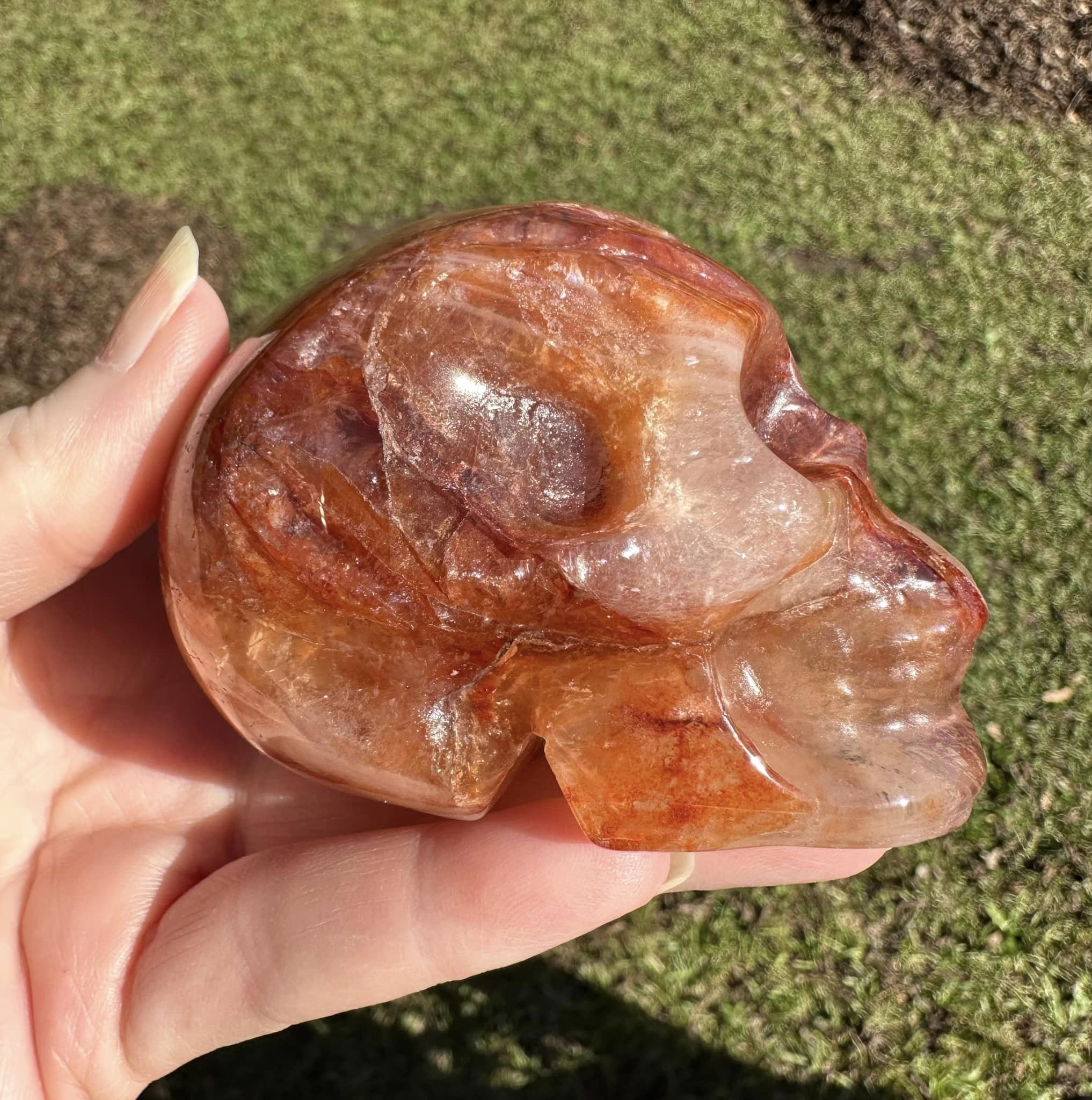 Discover the captivating Unique Fire Quartz Skull #5, a striking piece that combines natural beauty with intricate craftsmanship. This skull showcases vibrant fire quartz patterns, making it a distinctive addition to any collection. Perfect for those seeking a meaningful decorative item or a unique gift, it offers both aesthetic appeal and a touch of mystique. Embrace the energy and elegance this fire quartz skull brings to your space.