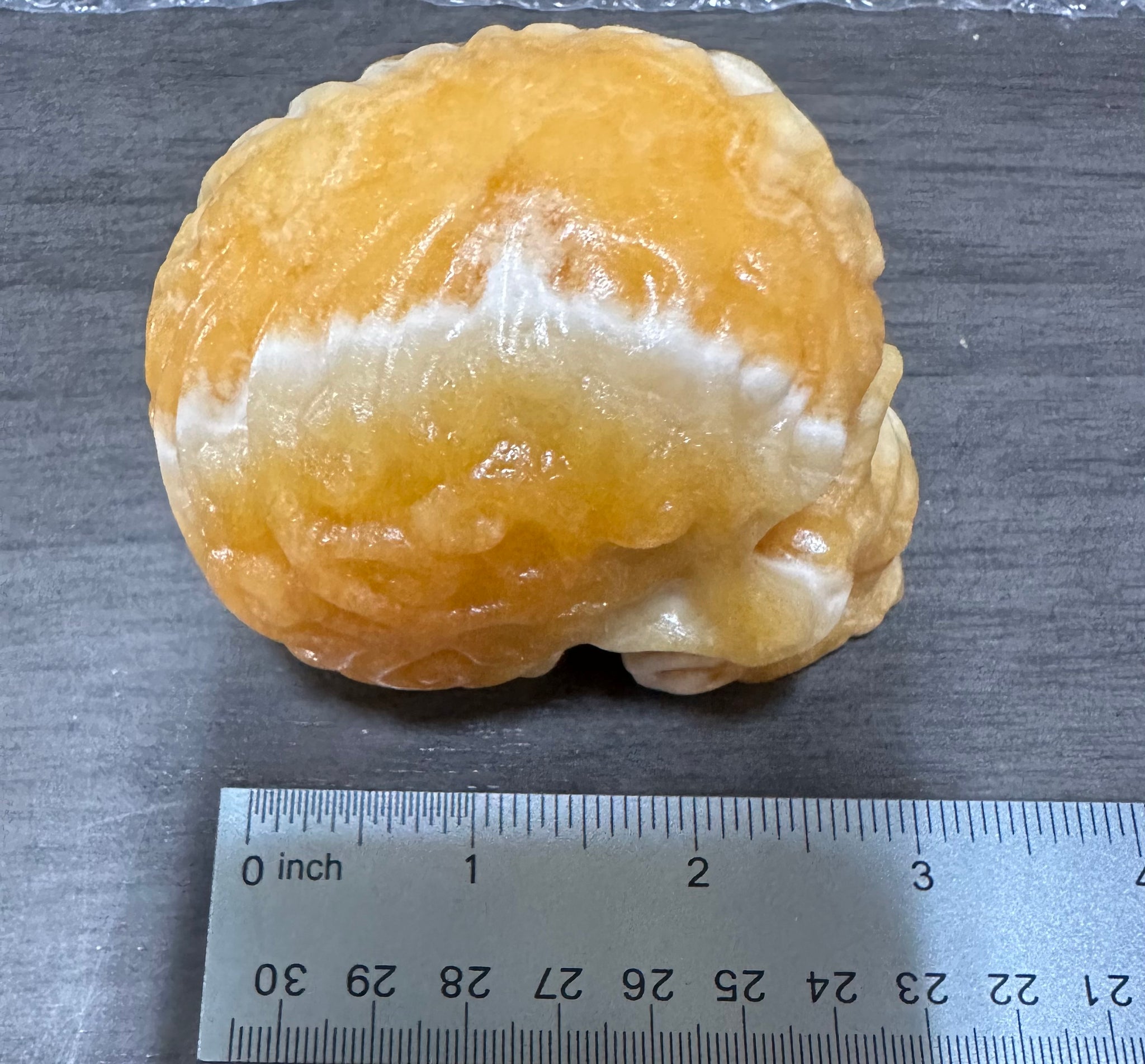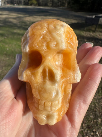 Add a unique touch to your collection with our Yellow and White Mixed Calcite Skull #3. Crafted from high-quality mixed calcite, this skull boasts a beautiful blend of yellow and white hues. The perfect conversation starter, this skull is sure to add a touch of intrigue to any room.