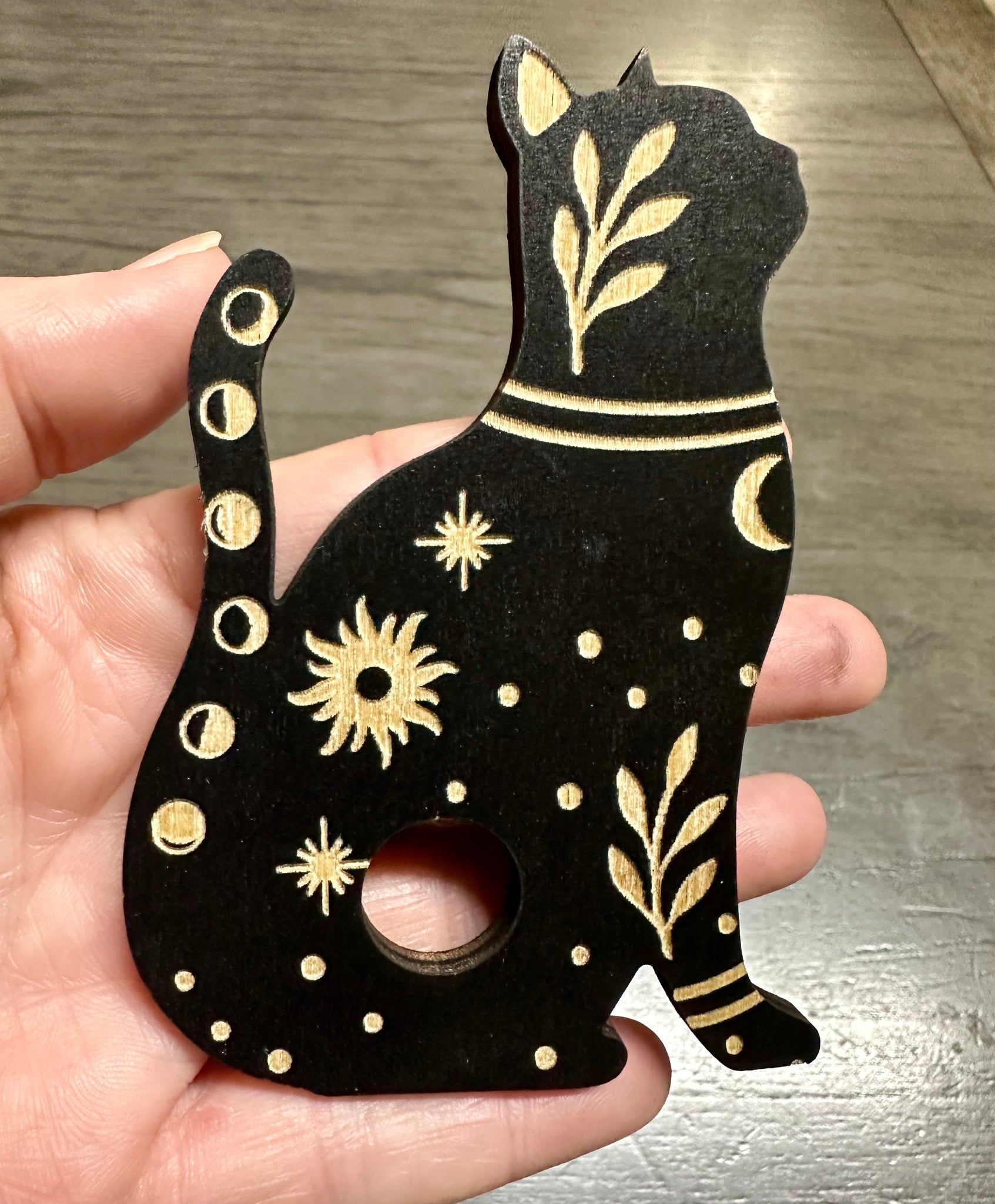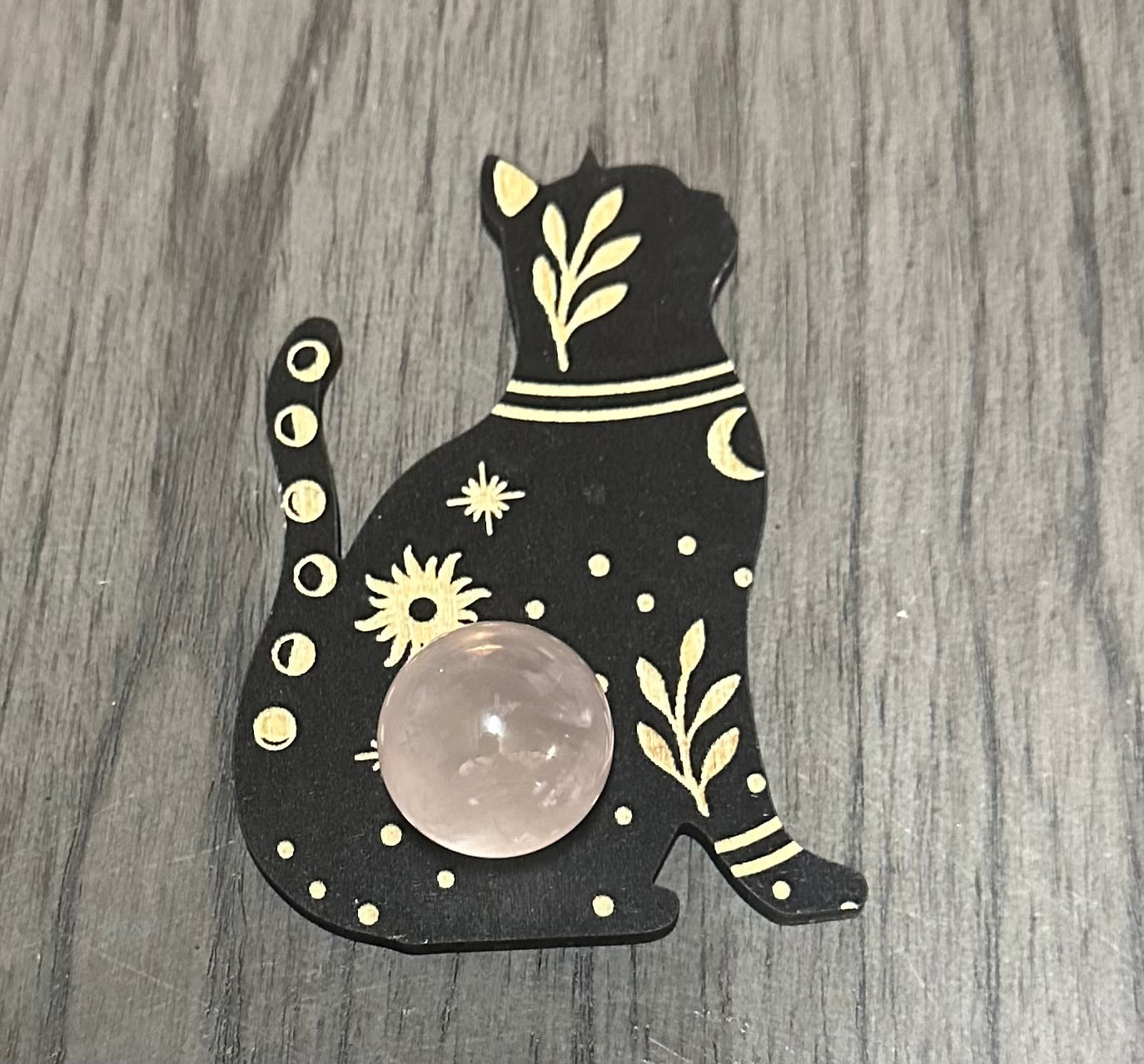 Add a touch of whimsy to your home décor with our Cat Crystal Ball Wooden Display Stand. Perfect for displaying your favorite crystal ball or other small trinkets, this stand features a charming cat design that will delight any cat lover. Handcrafted from high-quality wood, it's a durable and elegant addition to any room.