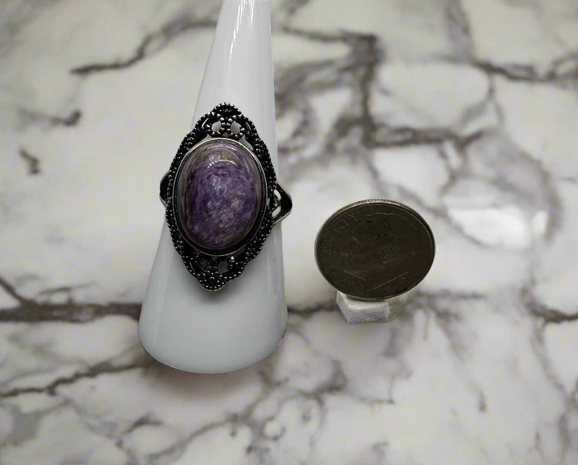 Natural Charoite Ring #7