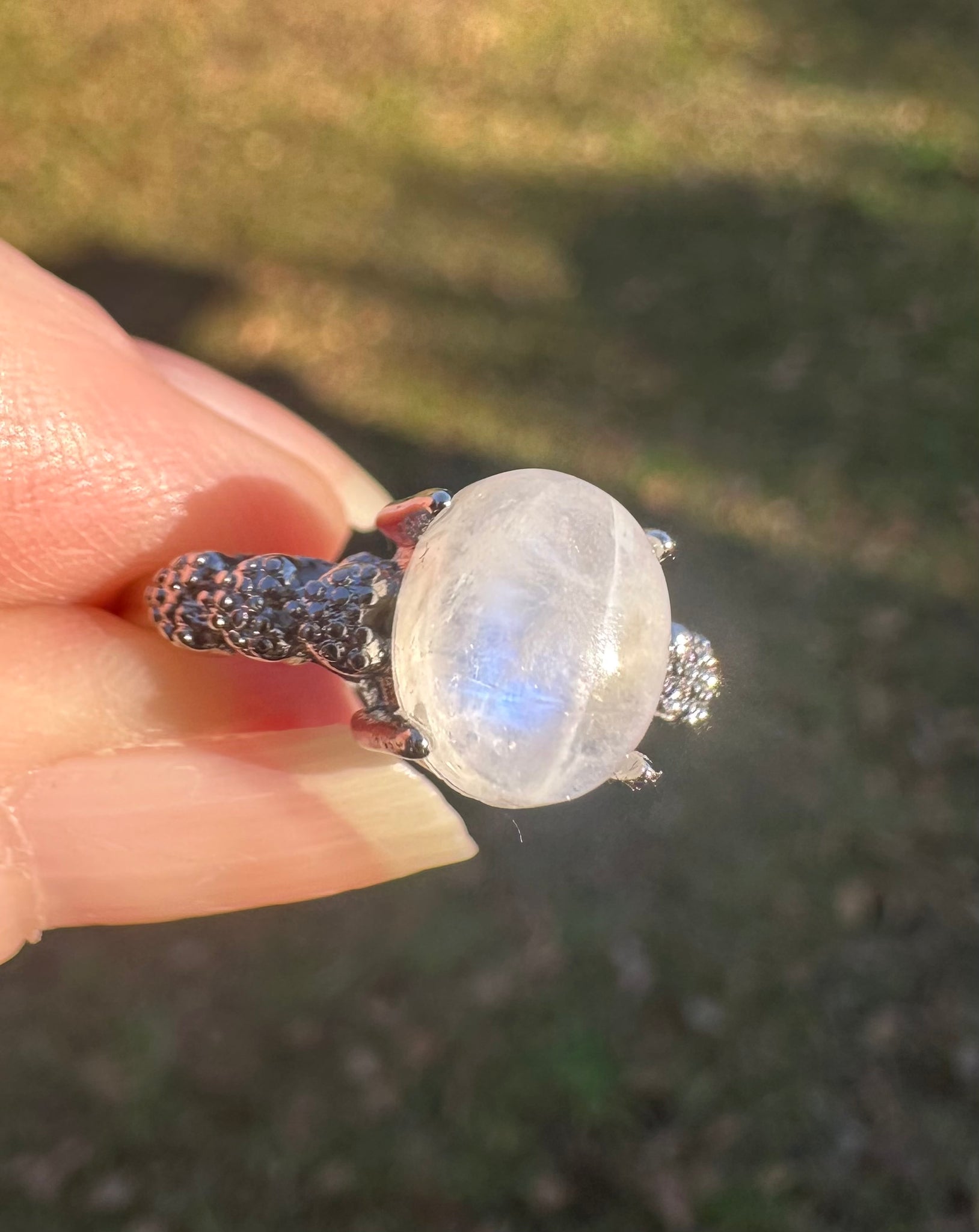 Elevate your style with our Natural Sri Lanka Moonstone Rings. Handcrafted with authentic moonstone from Sri Lanka, these rings bring a touch of unique beauty to any outfit. Embrace the natural energy of moonstone and add a sense of magic to your look.