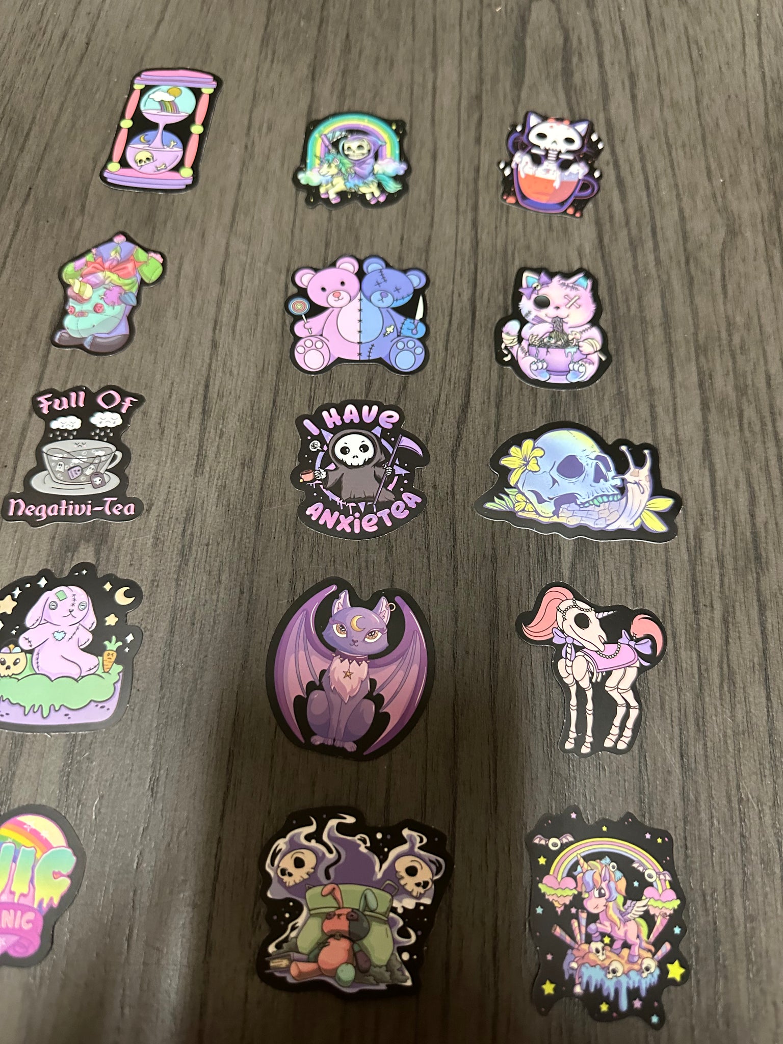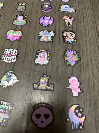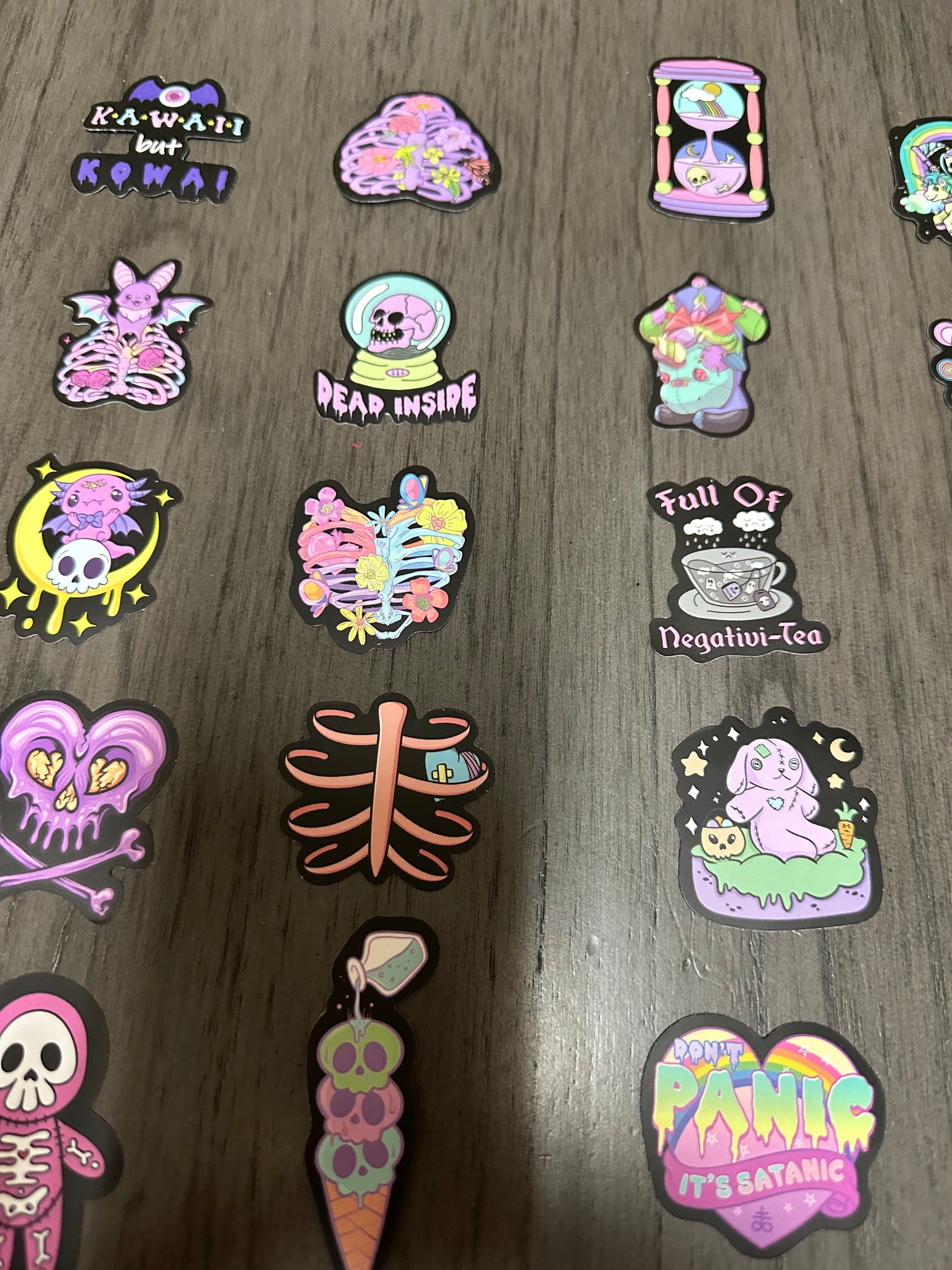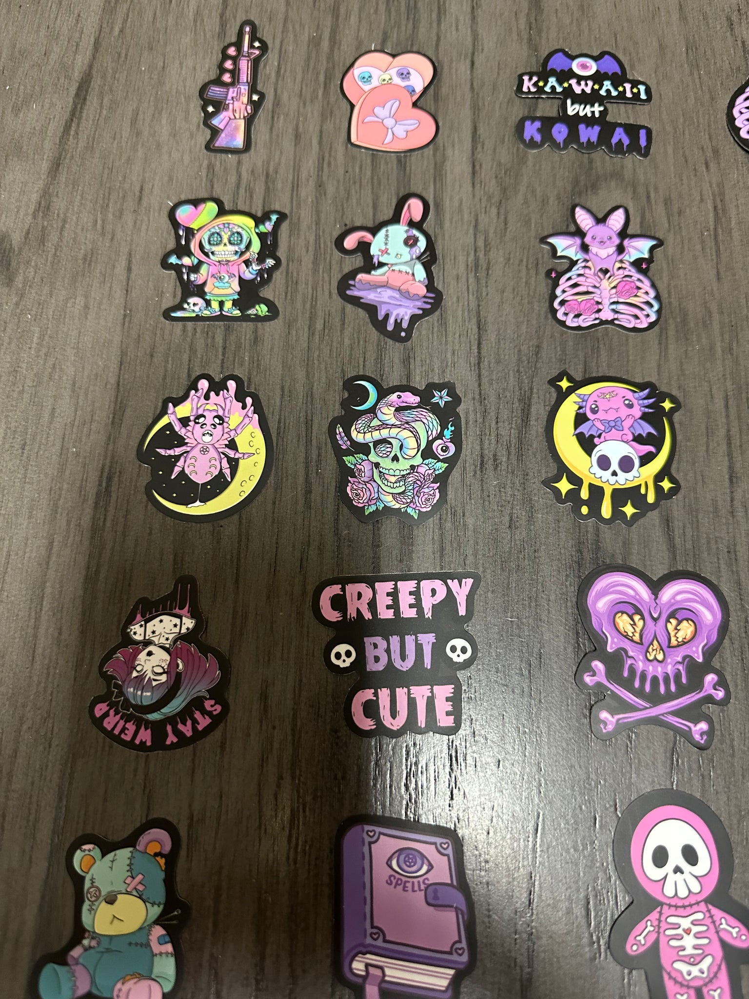 Upgrade your sticker game with our Gothic Collection set of 56 stickers! Featuring beautifully designed gothic imagery, these stickers are perfect for adding a touch of dark elegance to your belongings. Easily personalize your laptop, notebooks, or water bottles with these high-quality stickers. Show your gothic side with our sticker set today.