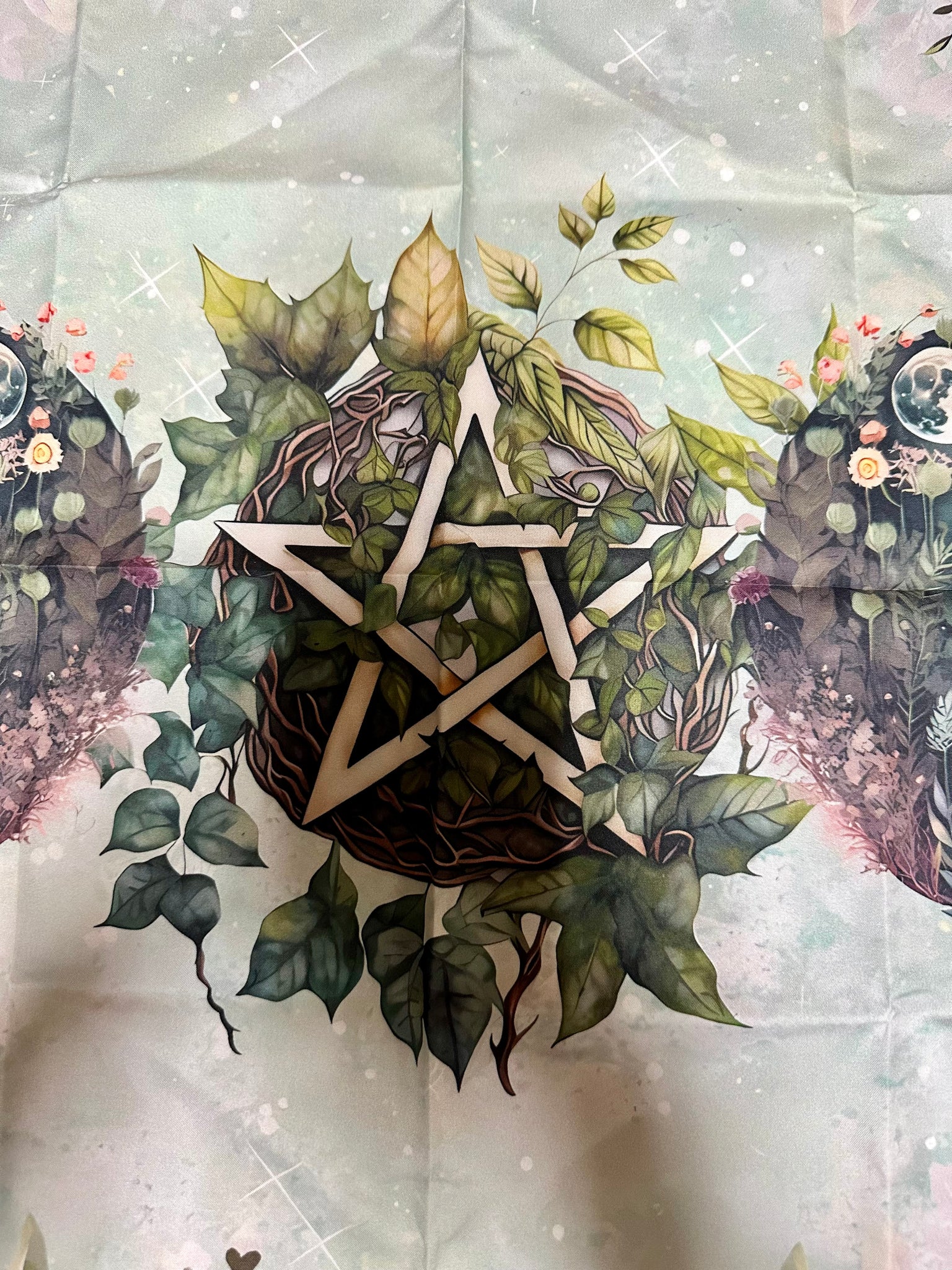 Transform your sacred space with our Green Leaf Flower Tarot/Altar Cloth Tapestry. Made with soft and durable fabric, this versatile cloth can be used as a tarot reading mat or as a decorative altar covering. The intricate green leaf and flower design adds a natural touch to your spiritual practice.