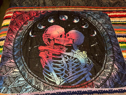 Skeleton Couple Kiss Tapestry