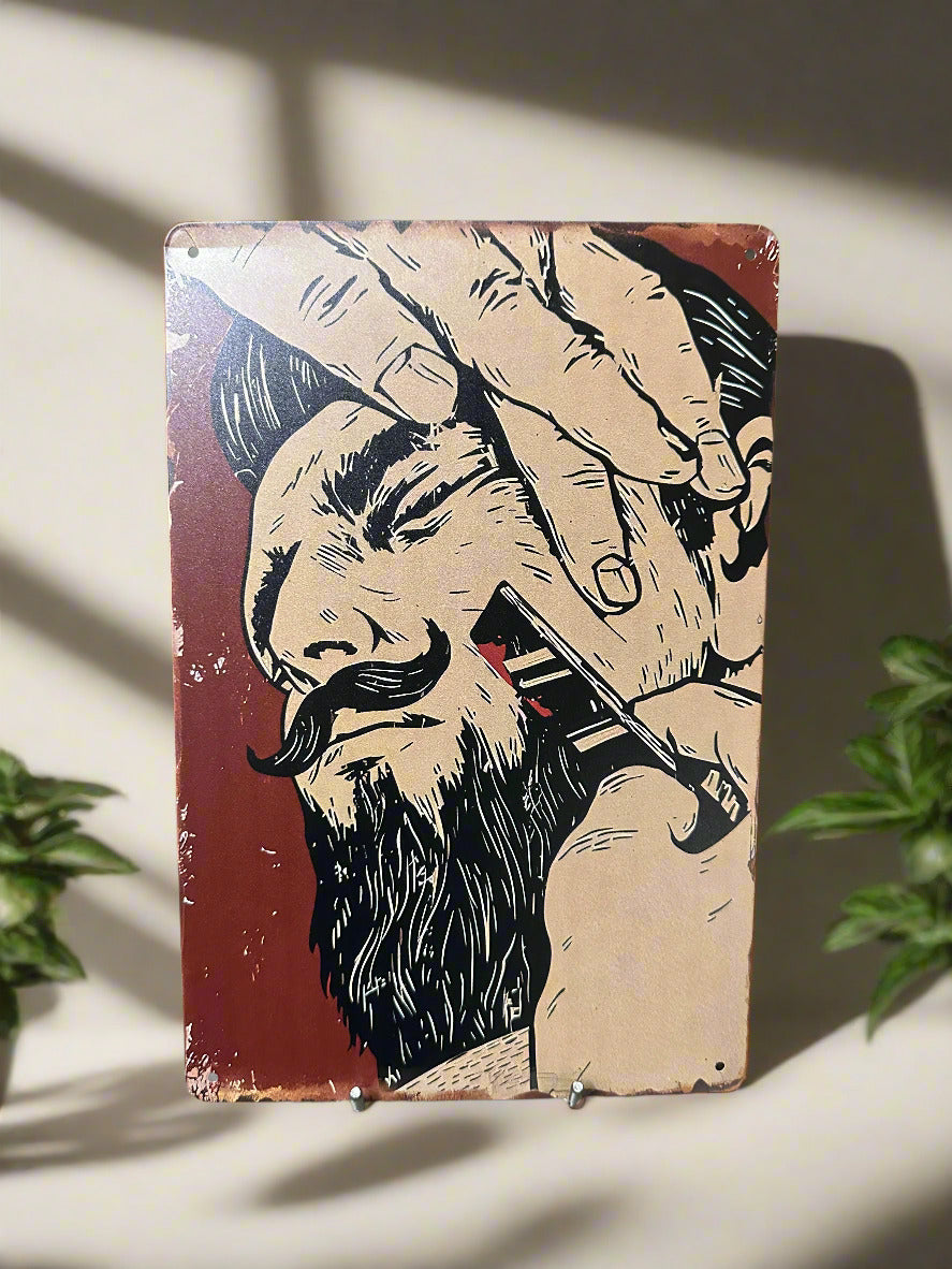 Add a classic touch to your space with this Barber Shaving Tin Sign. Perfect for barbershops or personal grooming areas, it brings nostalgic charm and style. Durable and eye-catching, this sign makes an inviting statement that celebrates the timeless art of shaving. Elevate your decor with a vintage vibe that customers and guests will appreciate.