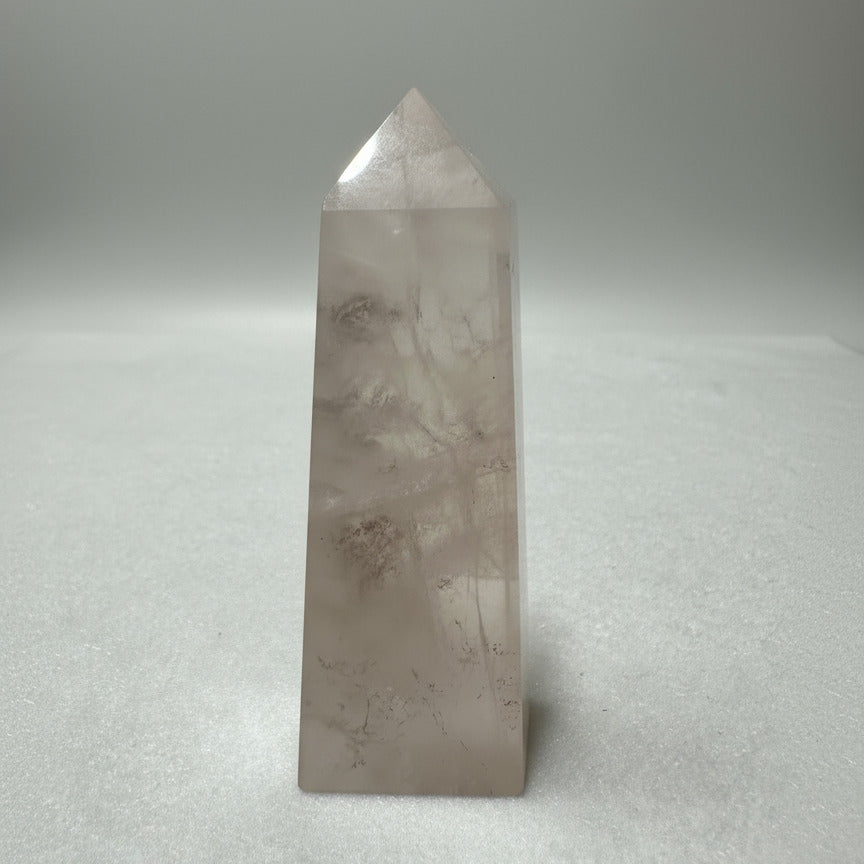 Dendritic Quartz Tower showcases nature's artistry with striking black dendrite patterns flowing through quartz crystal. This striking tower combines raw geological beauty with natural energy, making it an ideal centerpiece for collectors and crystal enthusiasts alike. Perfect for meditation spaces, home décor, or as a meaningful gift, this unique specimen brings grounding earth energy and visual intrigue to any environment. Each tower is one-of-a-kind, ensuring you receive a truly distinctive piece of nature's craftsmanship.