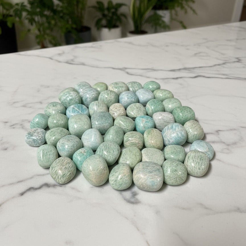 Discover the soothing beauty of Amazonite Tumbles, known for their calming energy and natural charm. Each polished stone highlights the vibrant green and blue hues that bring balance and clarity to your space. Perfect for meditation, home décor, or as a thoughtful gift, these tumbles promote peace and positive vibes wherever you place them. Elevate your collection with the gentle strength of Amazonite today.
