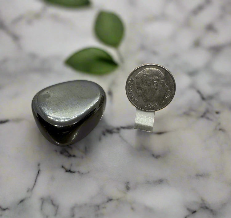 This Hematite Tumble, uniquely polished gemstone that encourages grounding and stability. Its sleek black surface has a metallic luster that is said to help absorb negative energy. Ideal for any collection, it is a calming reminder that even in times of chaos, balance can be found.