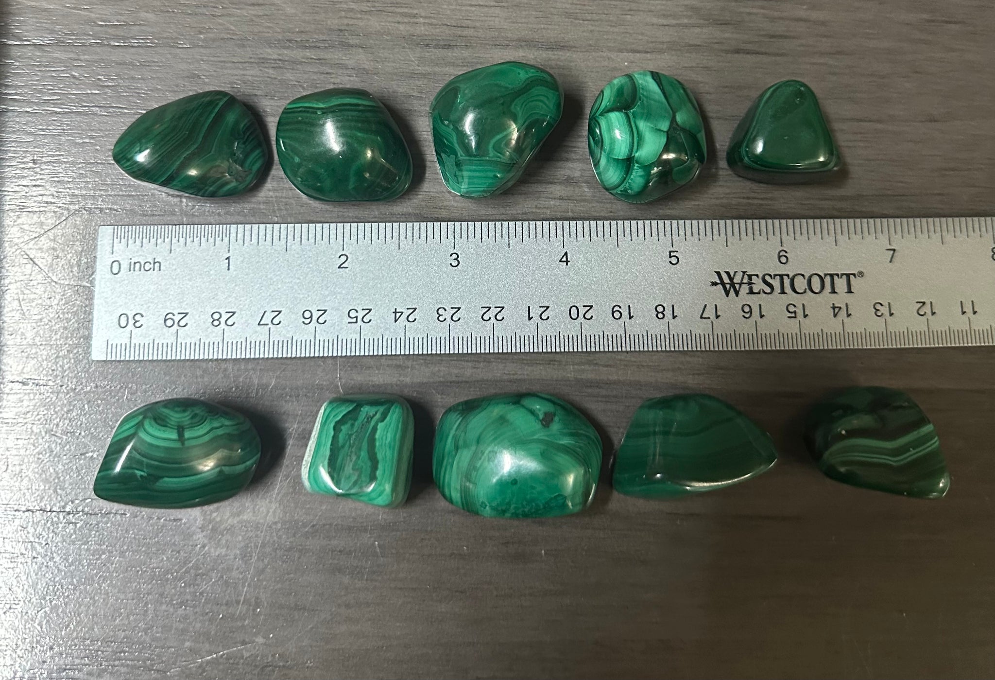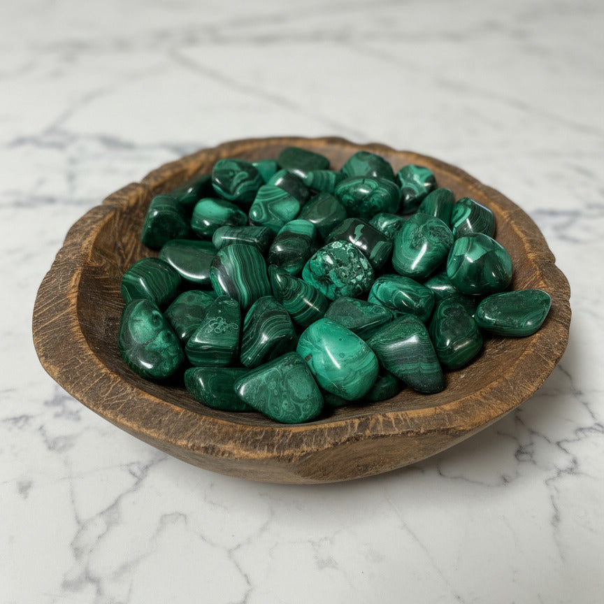 Natural Malachite Tumbles feature vibrant green shades with characteristic swirling patterns, polished to a smooth finish. These stones are prized for their mineralogical significance and aesthetic appeal, making them valuable for collectors, crystal practitioners, and artisans. Their natural formation and polished surface reveal malachite’s unique banding, offering both visual interest and tactile satisfaction. Ideal for display, meditation, or incorporation into custom jewelry, these tumbled stones provide an authentic connection to this distinctive copper carbonate mineral.