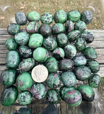 Ruby Zoisite Tumbles combine the vibrant green of zoisite with striking ruby inclusions, creating a unique and powerful stone. These polished tumblestones are ideal for collectors and crystal enthusiasts seeking to enhance energy balance and emotional healing. Their smooth finish makes them perfect for meditation, carrying in a pocket, or displaying as natural art. Each piece showcases the natural beauty and intricate patterns of this rare mineral combination, offering both aesthetic appeal and metaphysical benefits.