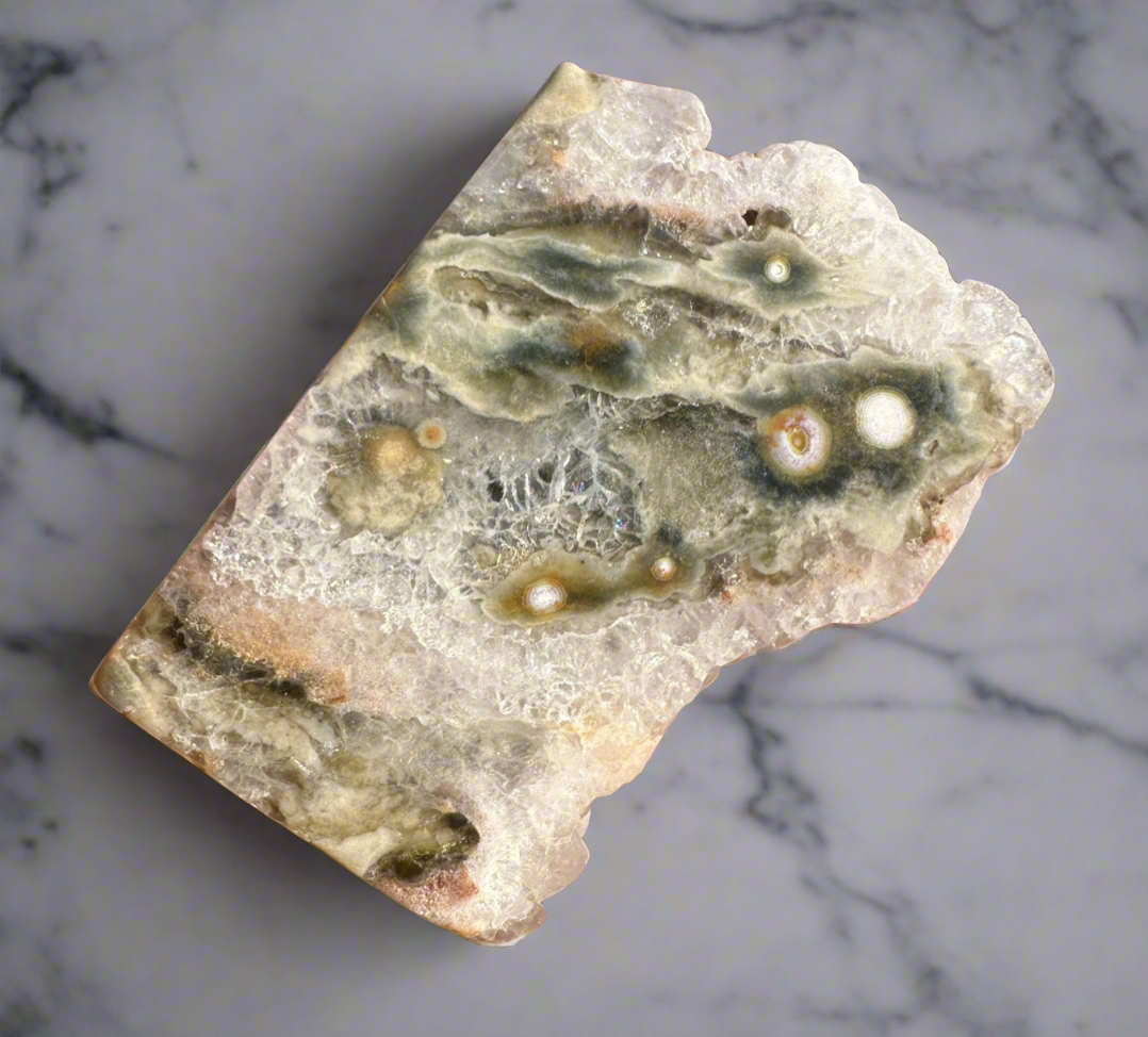 Add a touch of natural beauty to your home with our 8th Vein Ocean Jasper Polished Free Form #8. Each stone is unique, showcasing intricate designs and vibrant colors. Perfect for display, meditation, or as a calming accent piece. Bring the calmness of the ocean into your space with this stunning polished stone.