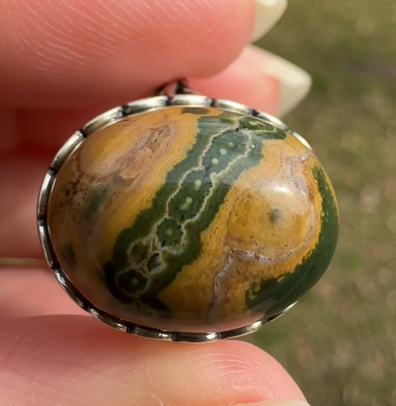 Add a touch of ocean-inspired elegance to any outfit with our 8th Vein Ocean Jasper S925 Sterling Silver Ring #1. This beautifully crafted ring showcases a stunning piece of ocean jasper set in sterling silver. Perfect for any occasion, this ring is a must-have for any jewelry collection. Ring is stamped 925 and is adjustable. The stone size is approximately 0.55-0.63in(1.4-1.6cm).