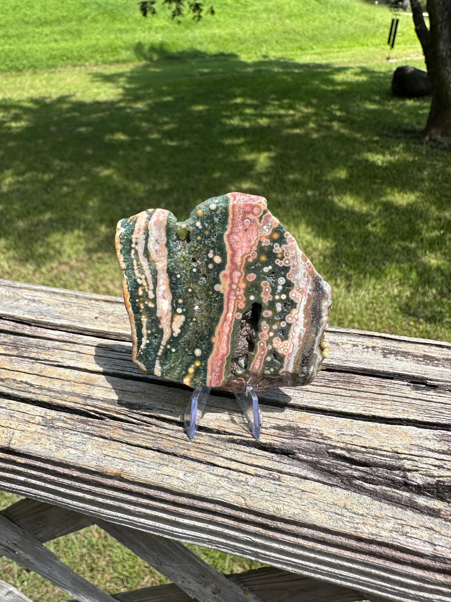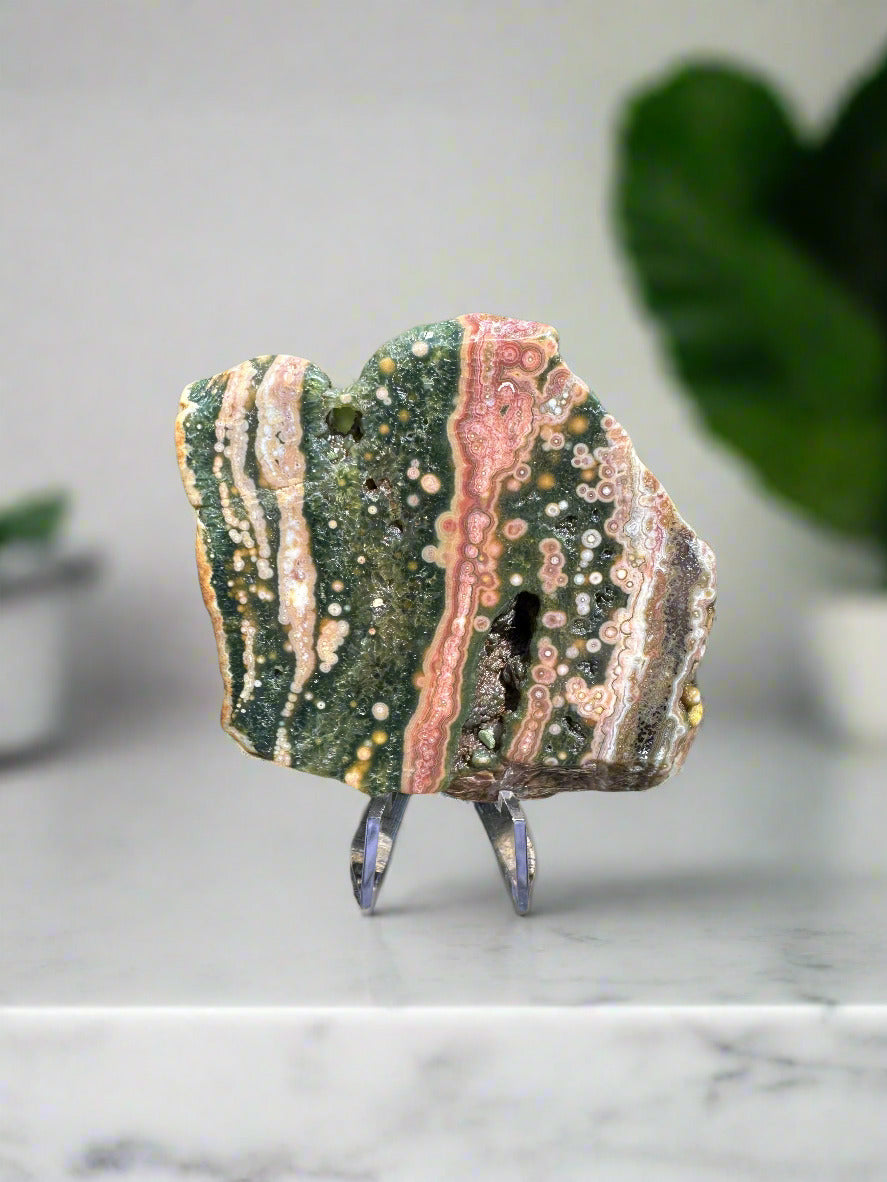 Discover the captivating beauty of the 8th Vein Ocean Jasper Slab #123, showcasing vibrant swirling patterns and rich colors unique to this rare stone. Perfect for collectors and designers alike, this slab brings natural artistry and a soothing coastal vibe to any space. Enhance your collection with a piece of the ocean’s mystery and timeless charm.